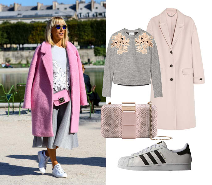 Another popular shade is the classic pink color. Under it is good to pick up clothes and shoes in white and beige.