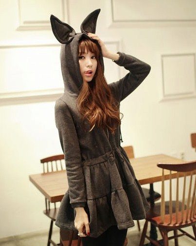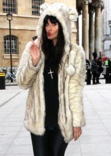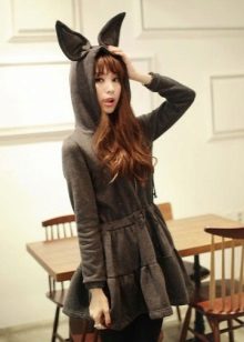 Another unusual model of the hood - with ears. The ears are small round (bearish), sharp triangular (feline) and long, hanging down to the shoulders (rabbit). The original coat with ears on the hood is now worn not only by kids, but also by brave older women.