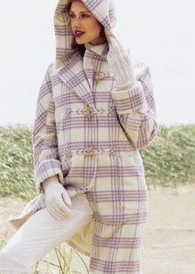 The classic version of the length of the coat with a hood - to the ankle. Double-breasted coat looks great on the knee. Flared options can be found mostly not below the knee. The length of the traditional duffle coat with a hood is on the palm above the knee. Coats with a voluminous hood trimmed with fur, it is better to choose a medium length.