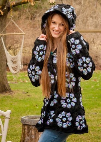 In the summer you can throw a light coat with a hood instead of a collar, made of thick cotton. Ideal materials for such options - practical denim and velvet velvet.