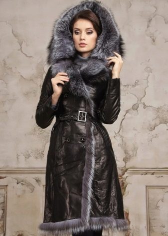 Coats with a hood made of leather or high quality leatherette also remain favorites of the autumn-spring season. The coat of shiny patent leather looks particularly impressive, it is presented in a rich color palette, there are quite bright patterns. Patent leather has a smooth surface and does not absorb water.