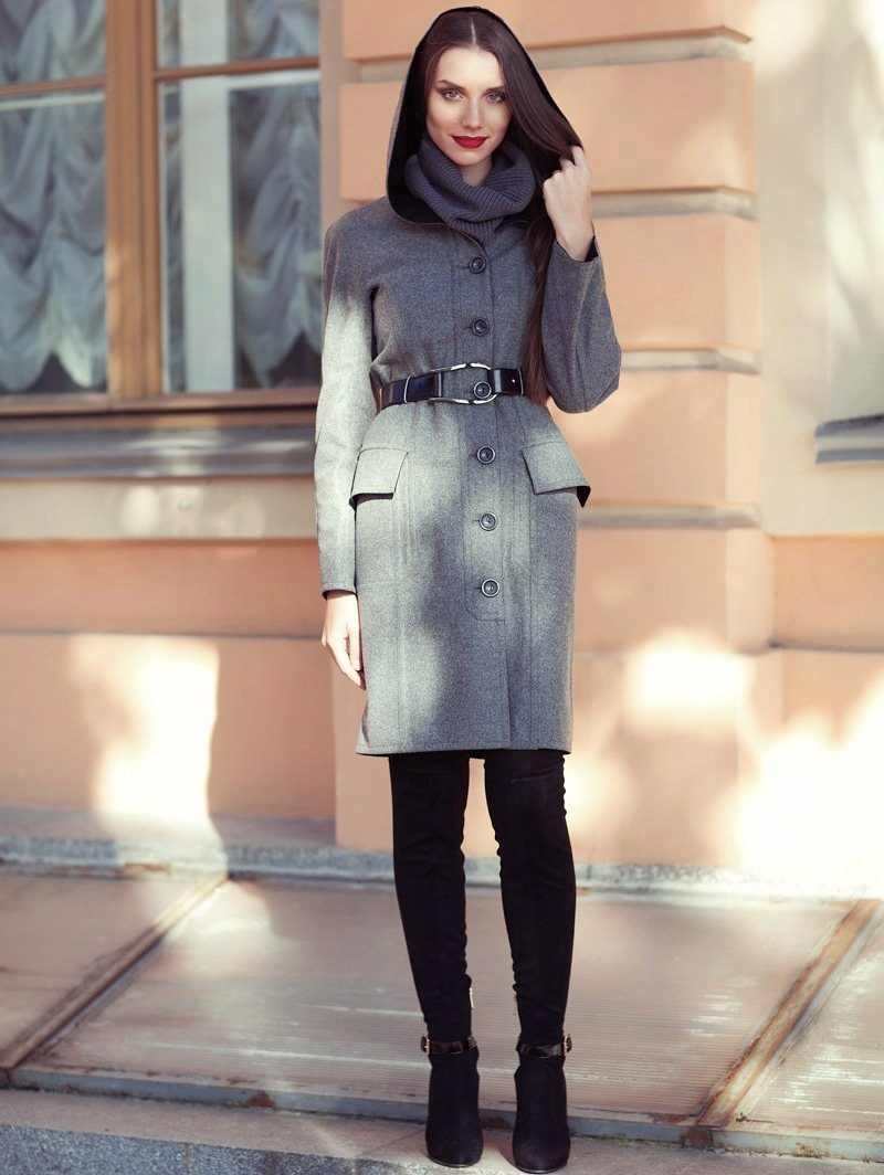 Slender and tall girls can choose almost any styles of coat with a hood. Ladies with a magnificent bust are recommended to pick up a coat with the missing decor on the shoulders and chest. Young ladies with voluminous shoulders should prefer models of coats with raglan sleeves or A-silhouette coats with a small hood.