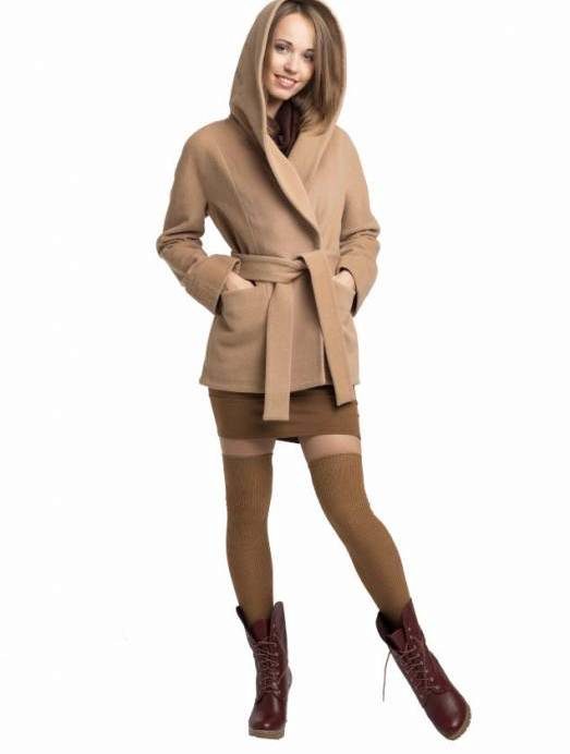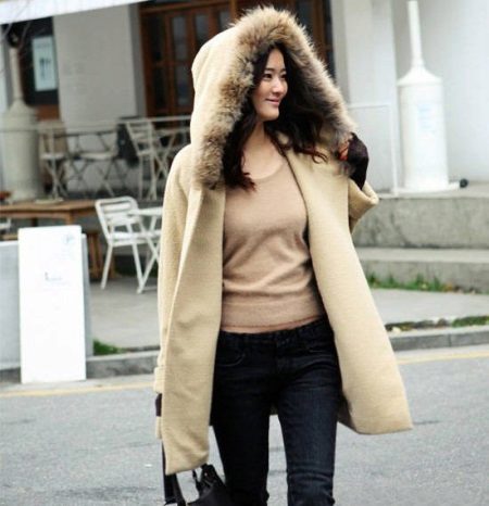 Hide a tummy ticking will allow hooded trapeze coat. The belt is not desirable. Girls with wide hips fit coat flared from the waist line, as well as free models with a voluminous hood.