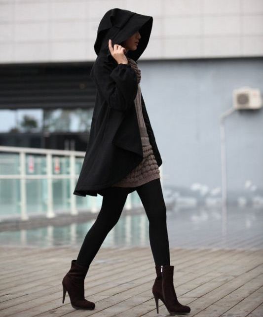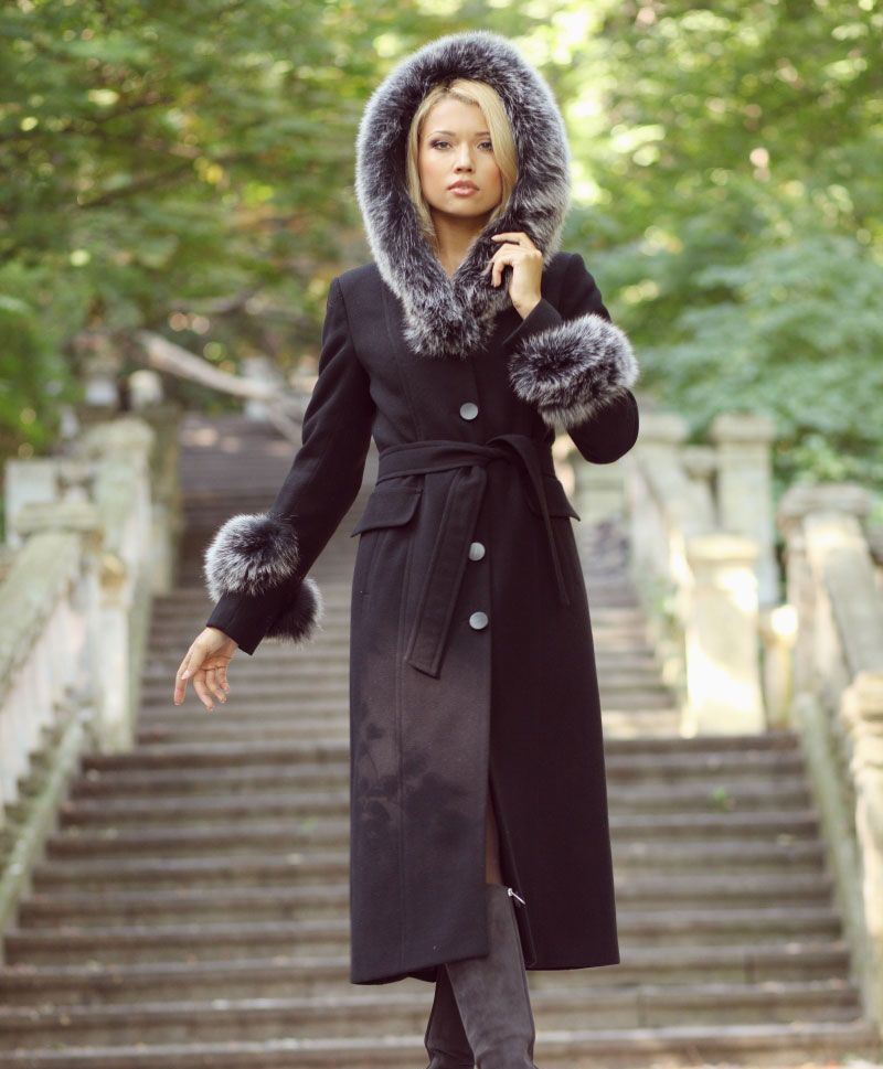 Immodest mini-coat with a hood show slender legs of their owners. Dina maxi “to the floor” is not practical enough in modern conditions and pace of life, such a coat is suitable only for infrequent appearances, in order to cover up a long evening dress and protect fresh styling on the head from wind and precipitation.