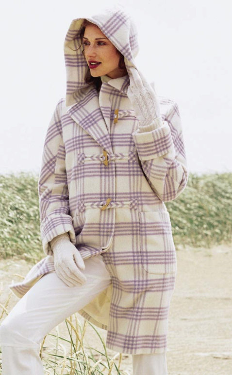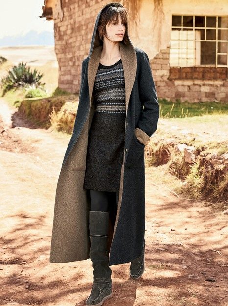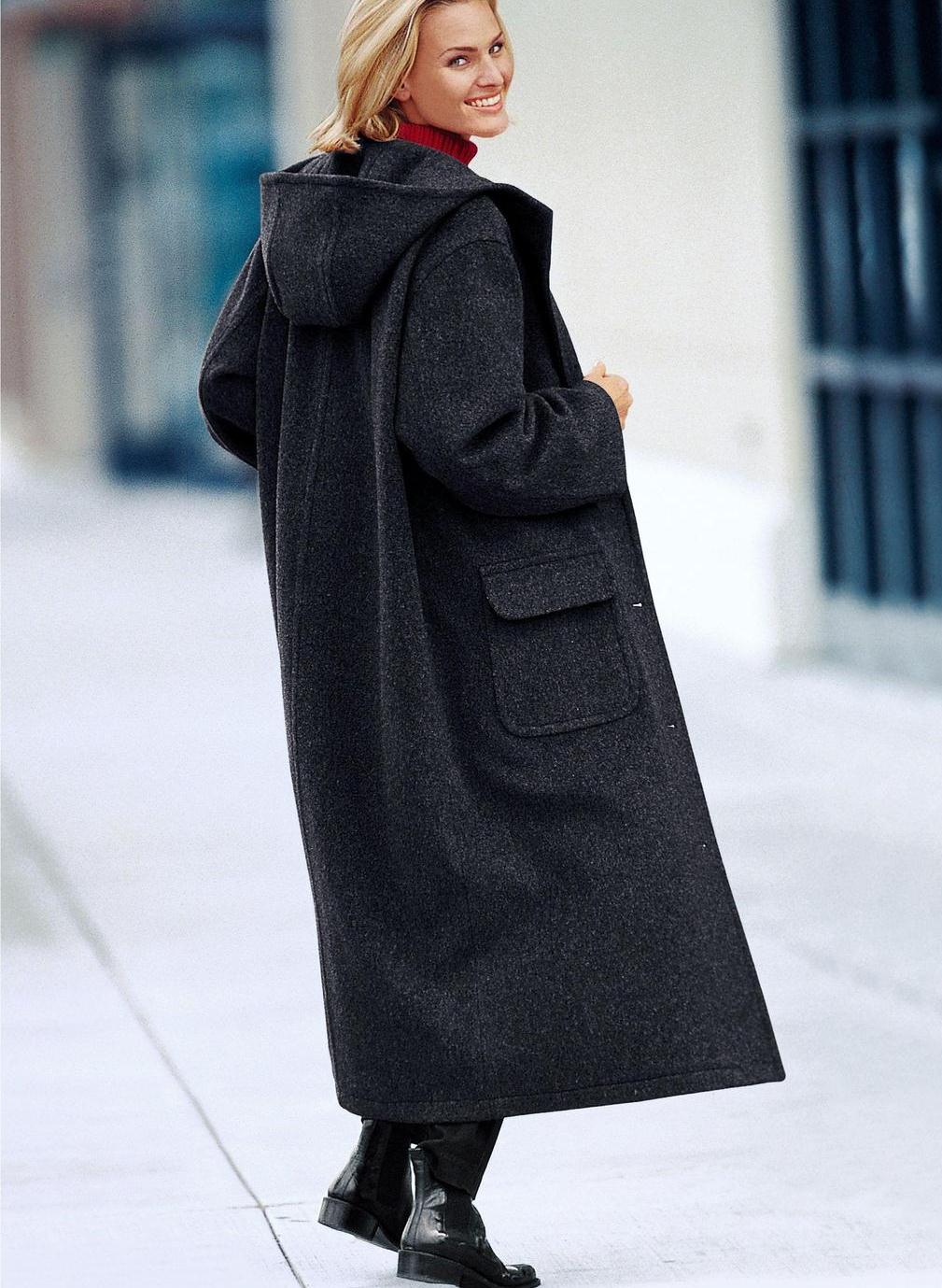 The main material for sewing a coat with a hood is woolen clothmade both from pure wool, and with addition of artificial fibers. The coat of wool is warm, cozy, eco-friendly and stylish. However, the hood in such models is suitable only as protection against cold and wind, it is better not to fall under the rain in a woolen coat, in this case only an umbrella will save.