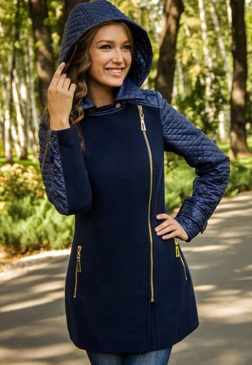 The fashionable tendency of contrast finishing of a female coat finds the increasing distribution. A coat with a hood is no exception. The hood, often in a company with sleeves and a belt or pockets, is sewn from a fabric other than the coat itself. Different types of wool coats are perfectly combined with each other, leather, both matte and lacquered, and quilted raincoat.