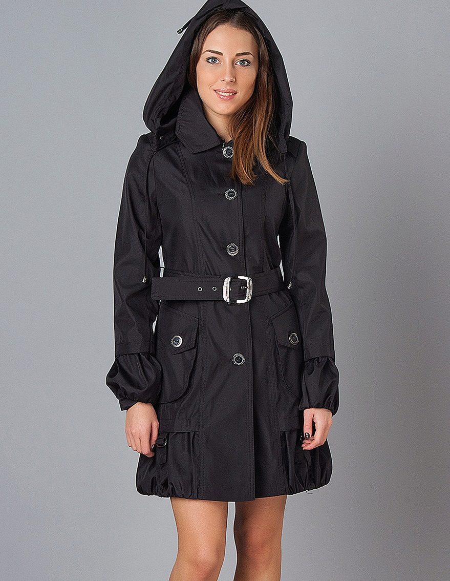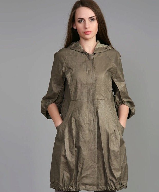 For the off season, women's hooded coats are quite relevant; raincoat fabric. The main task of a raincoat fabric is to protect its owner from wind and precipitation. For these purposes, manufacturers often impregnate the top layers of the coat with a water-repellent compound.