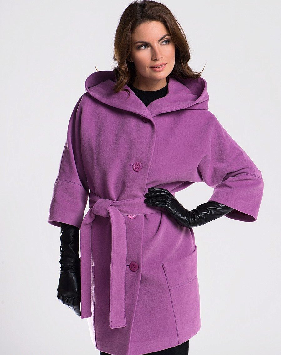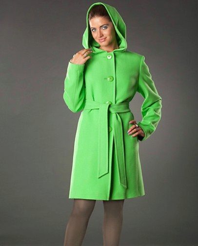 Lovers of the classics will appreciate the coat with the hood of beige, mustard, pearl gray, terracotta, olive and other muted colors. Young romantic girls will like hot pink, purple, coral, turquoise, lemon shades. Aged women prefer deep tones: dark blue, emerald, chocolate, burgundy.