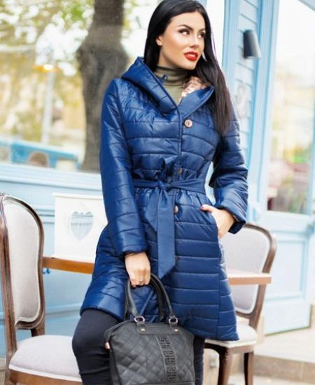 Feminine textile coat with a hood - one of the most affordable options. Such coats are practical, they are easy to care for, they are lightweight, durable and, thanks to the use of modern heaters, natural (down, feather, wool) or synthetic (synthetic winterizer, tinsuleyt, Waltherm), are quite warm.