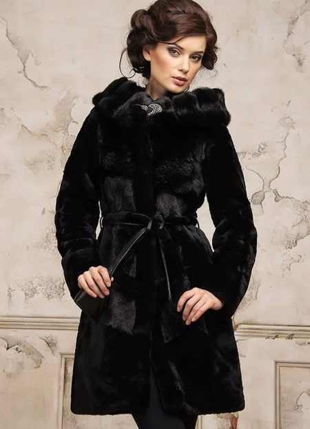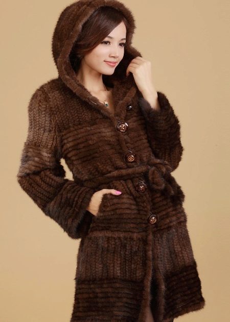 But not every woman can afford to buy a product from solid fur skins, then a knitted fur coat with a hood comes to the rescue. It is created by weaving fur strips on an elastic basis.
