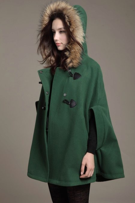 In recent years, to create stylish coats with a hood, they use not only traditional wool coats, such as alpaca, boucle, vigon, gabardine, diagonal, drape, cashmere, crepe and tweed, but also luxurious fur fabric, colored artificial fur, soft skin, light cotton fabrics, practical raincoat materials and even a tarp.