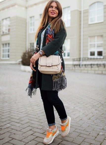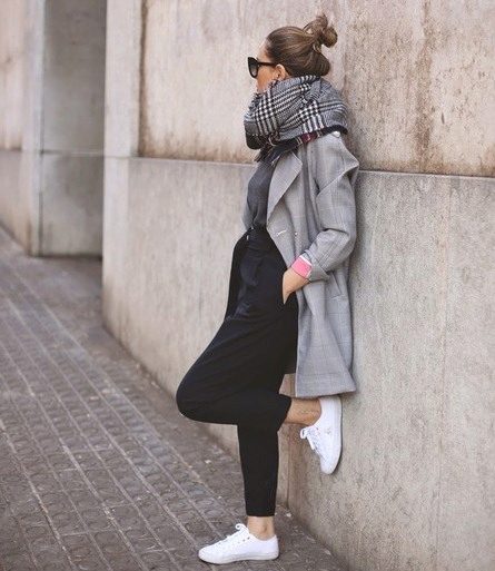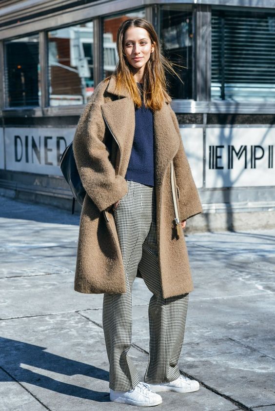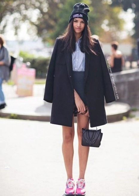 Despite the fact that sneakers and coats are a very fashionable tandem, an unfortunate choice of bottom or accessories can fundamentally spoil everything. Let's look at the most successful combinations that will help you complete the bow correctly.