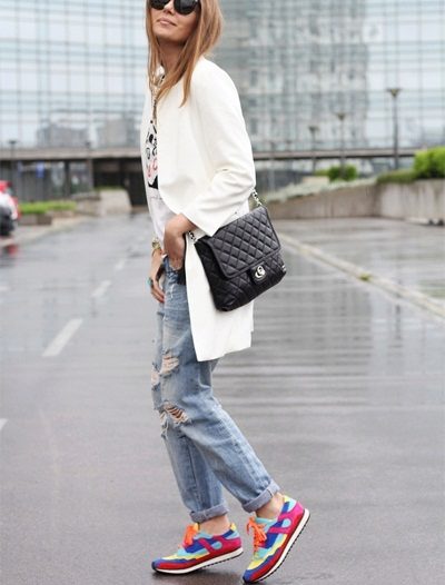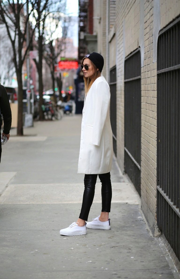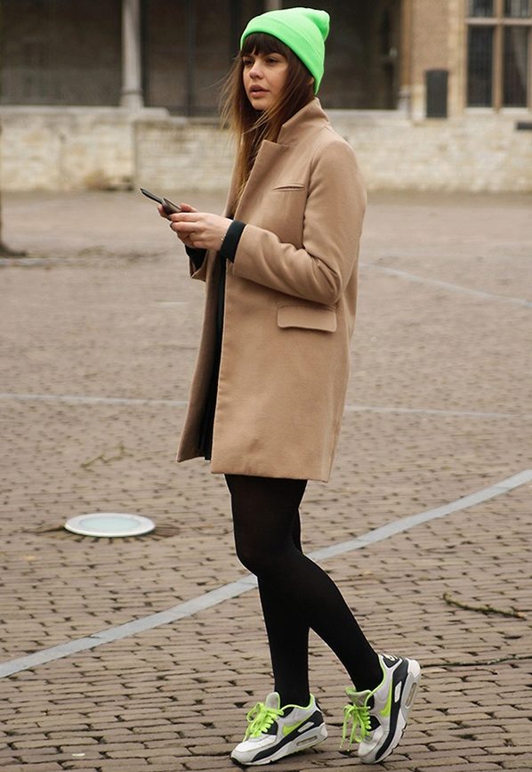 - Remember that sneakers should look good not only with a coat, but with the rest of the elements of your image.