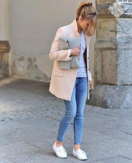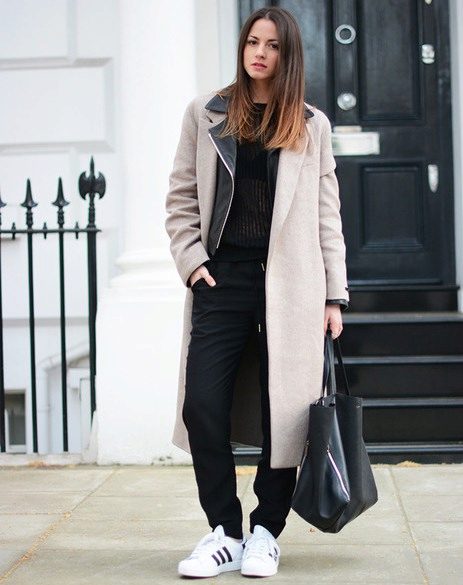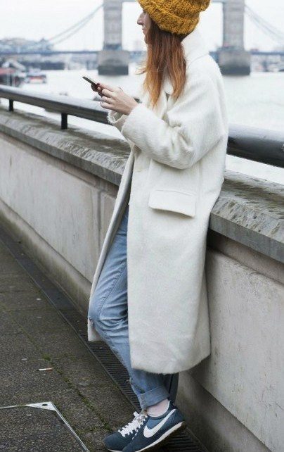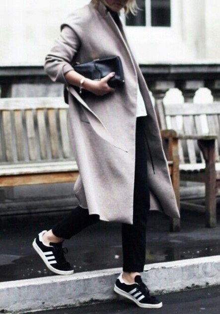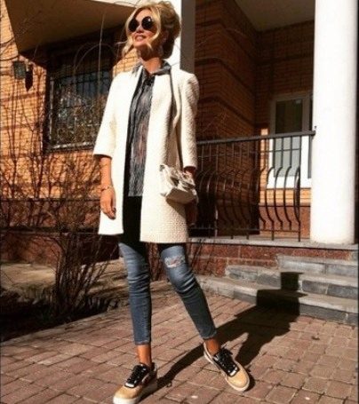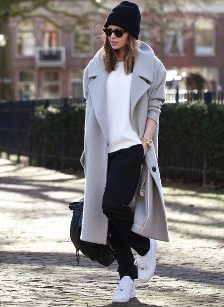 If you care about your health, choose comfort, but at the same time want to be in trend, feel free to start wearing a coat with sneakers.