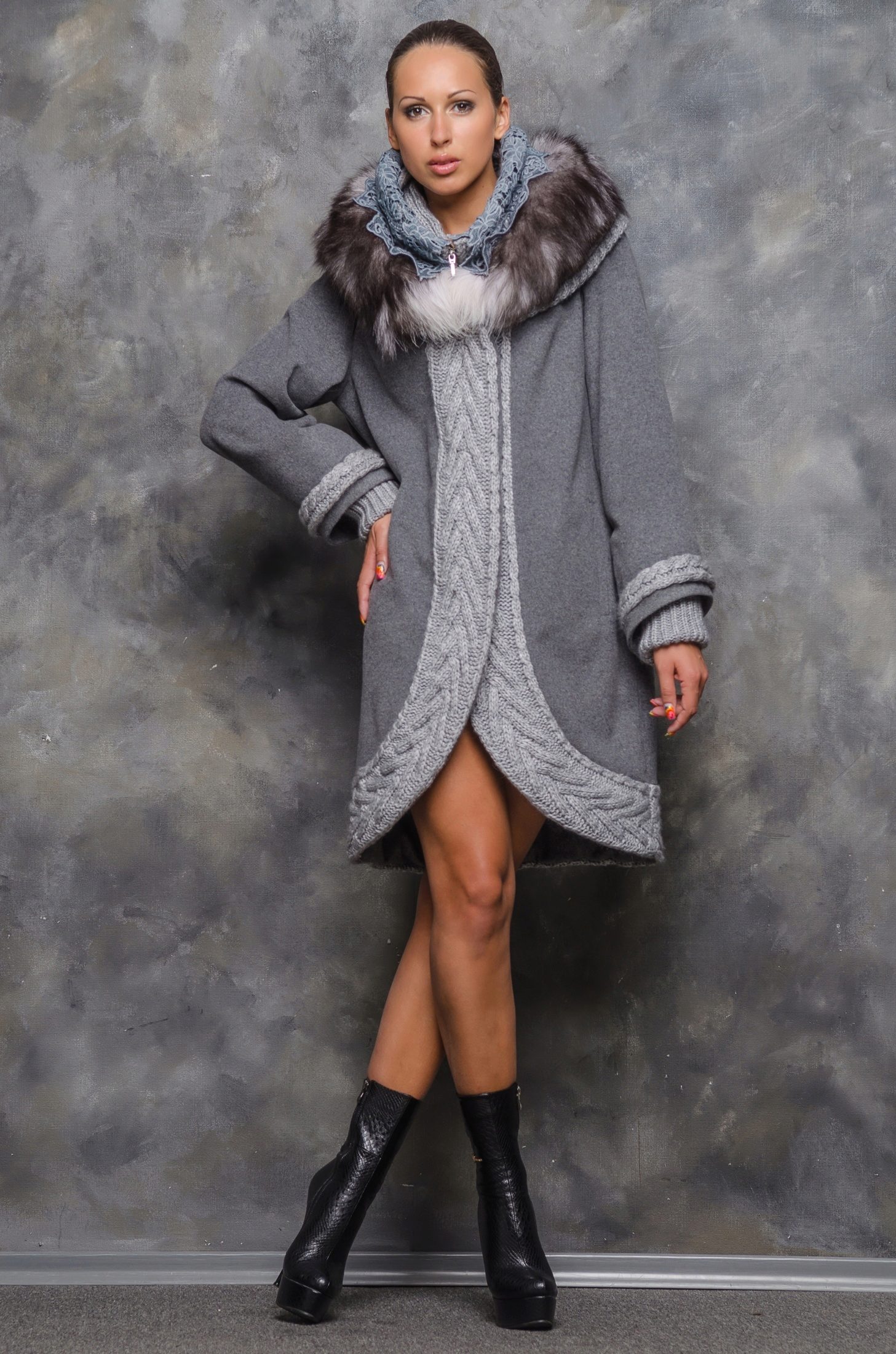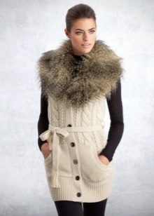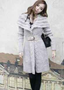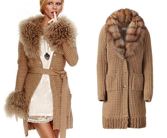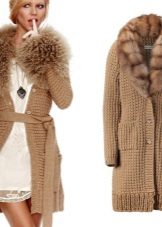 - Knitted. The original option for the off season. For a small collar and trim sleeves or pockets, faux fur is perfect, the color of which will emphasize both the color and the texture of the coat itself.