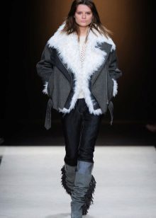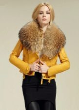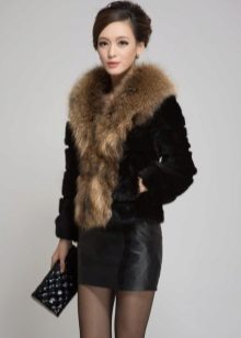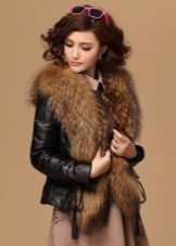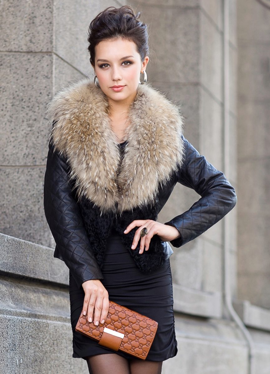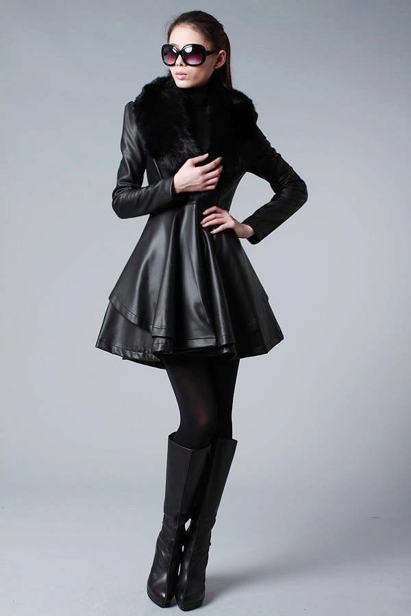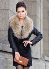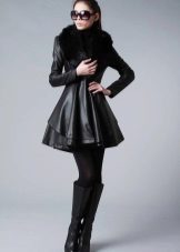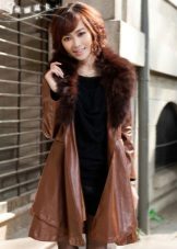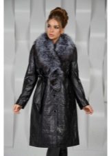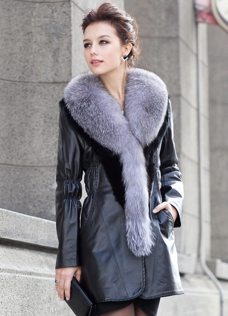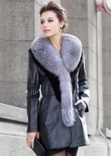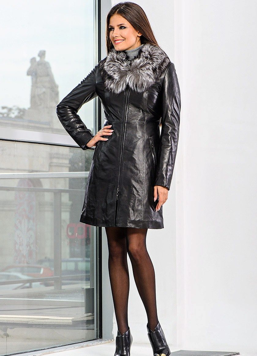 - Leather One of the most spectacular looks is a leather fitted coat (long or short) with a voluminous or even a huge fur collar with a long nap.