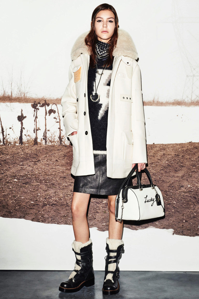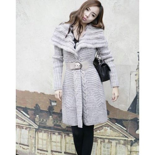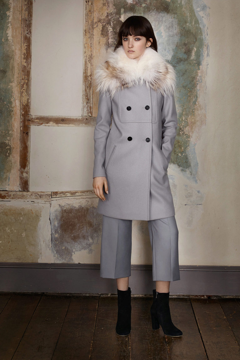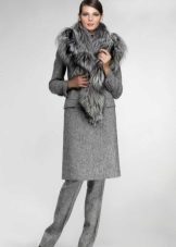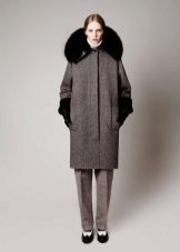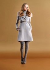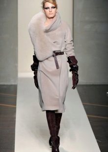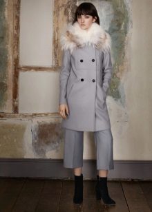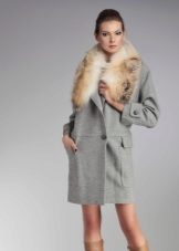 - A light gray Coach coat of a straight cut with a fur collar in tone is an elegant daily routine.