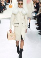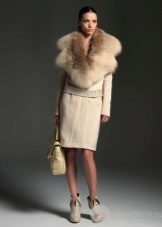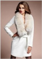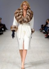 - The choice of avtoledi - Altuzarra jacket-coat to the waist white color with a huge fox collar.