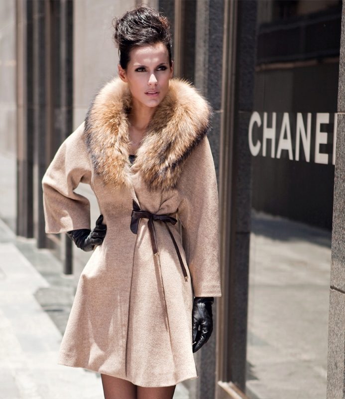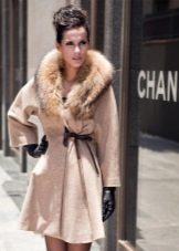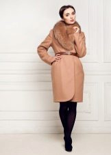 - Hourglass. This style will be popular with both designers and women always. Fitted, flared down, with or without a belt, it emphasizes the figure, making its hostess irresistible. Such a coat with a large and voluminous fur shawl collar or an asymmetrical collar looks particularly impressive.