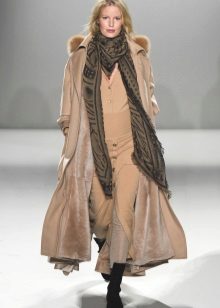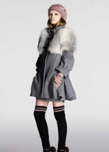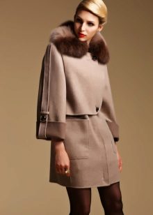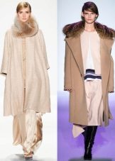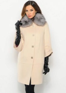- Noble beige and gray colors are perfectly combined with furs of natural shades. A beige coat with a lynx collar looks particularly elegant.