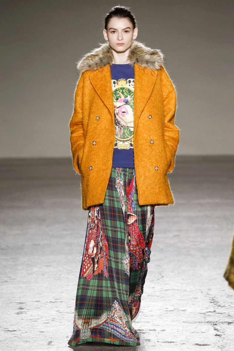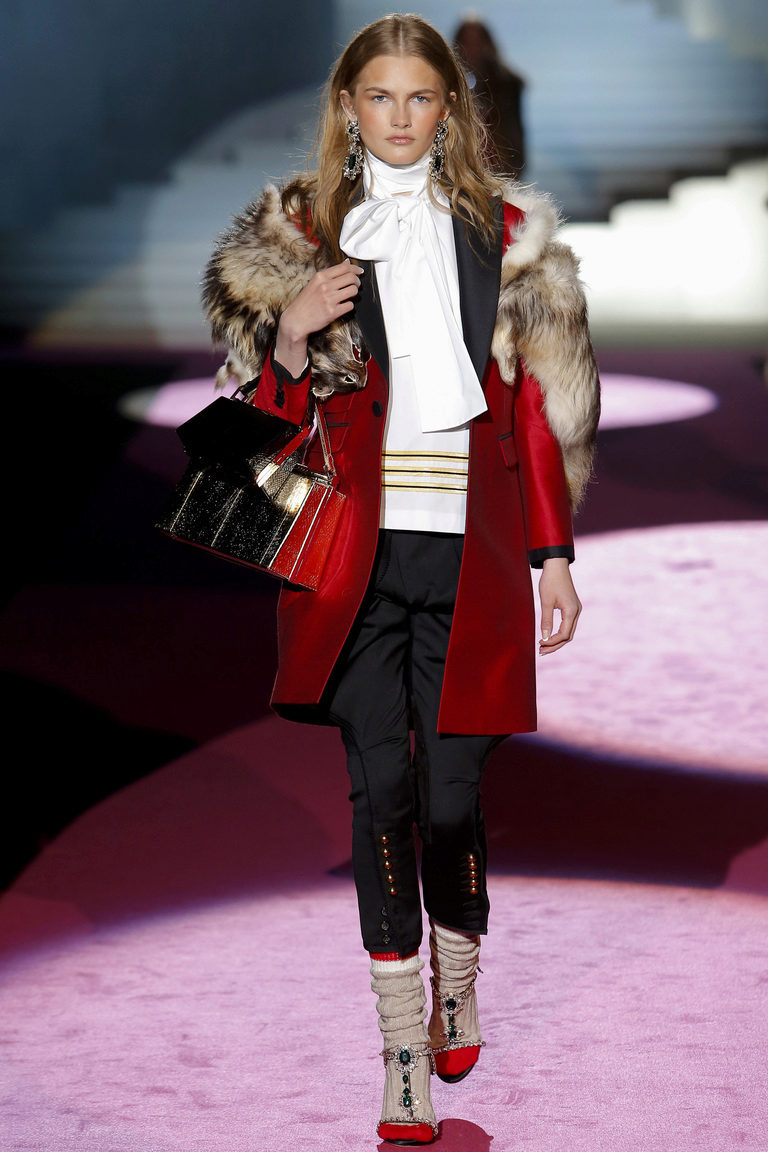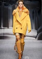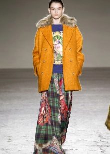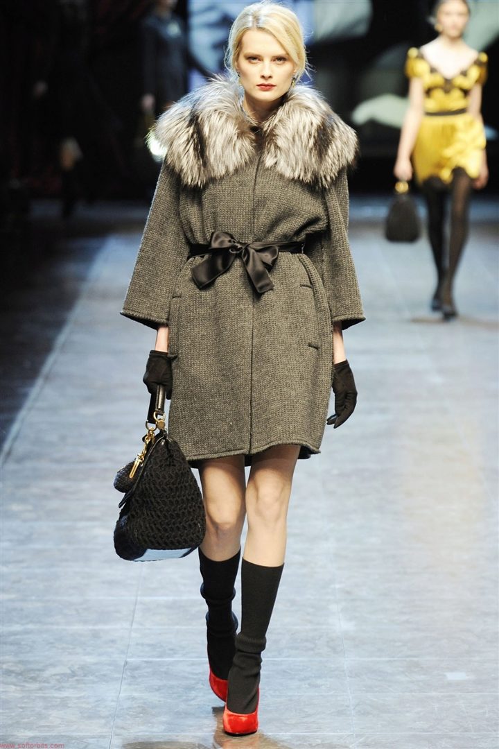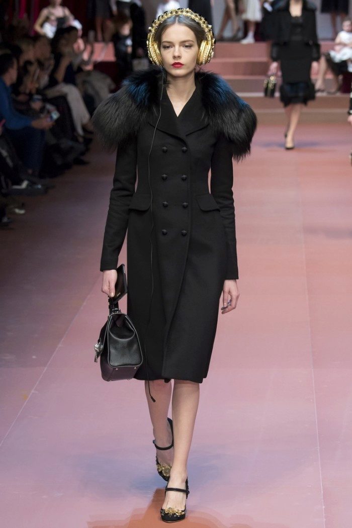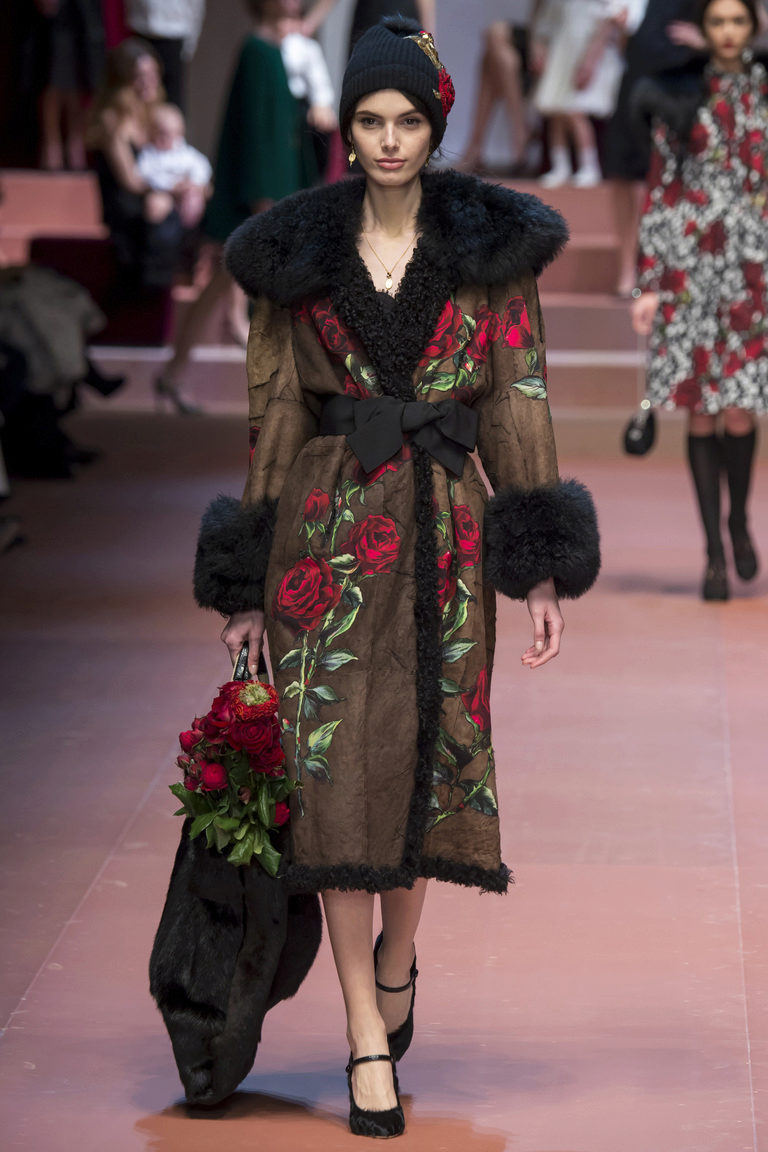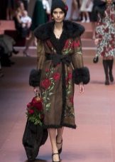 - A distinctive feature of the coat from Dolce & Gabbana 2016 is an unusual combination of bright colors on the fabric of the coat and the bright fur on the collar.