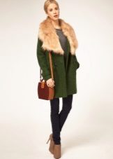 - Trapezoidal. Comfortable universal cut, visually increasing narrow or, conversely, hiding too full hips and even the stomach, if necessary. A great option for expecting a child woman. Fur collar with a better choice of volume, so that the silhouette was balanced.