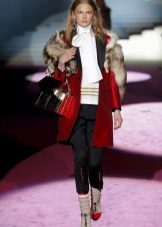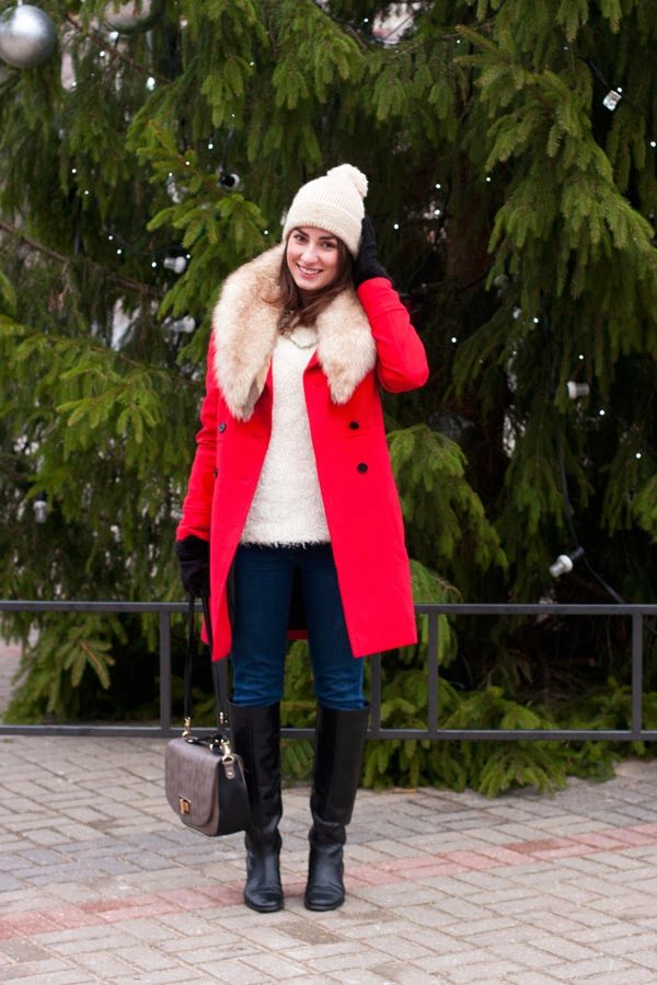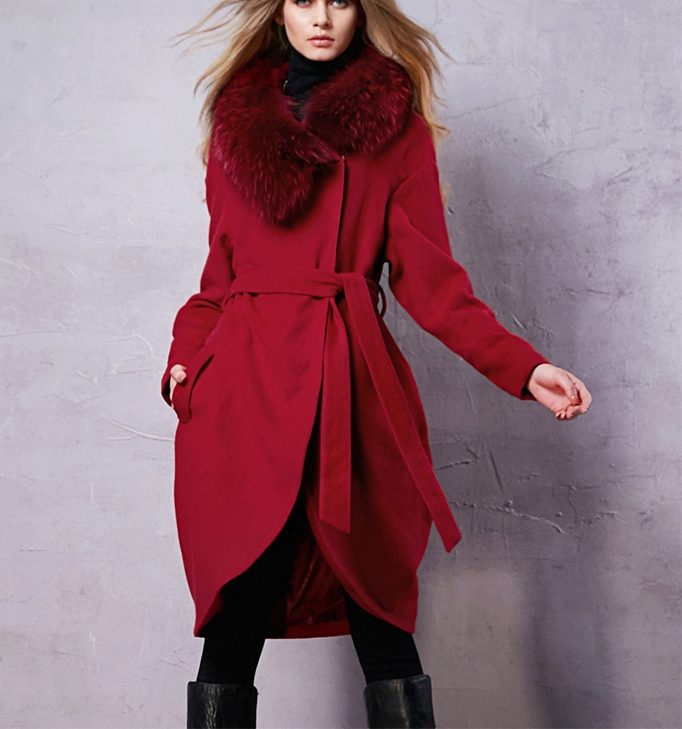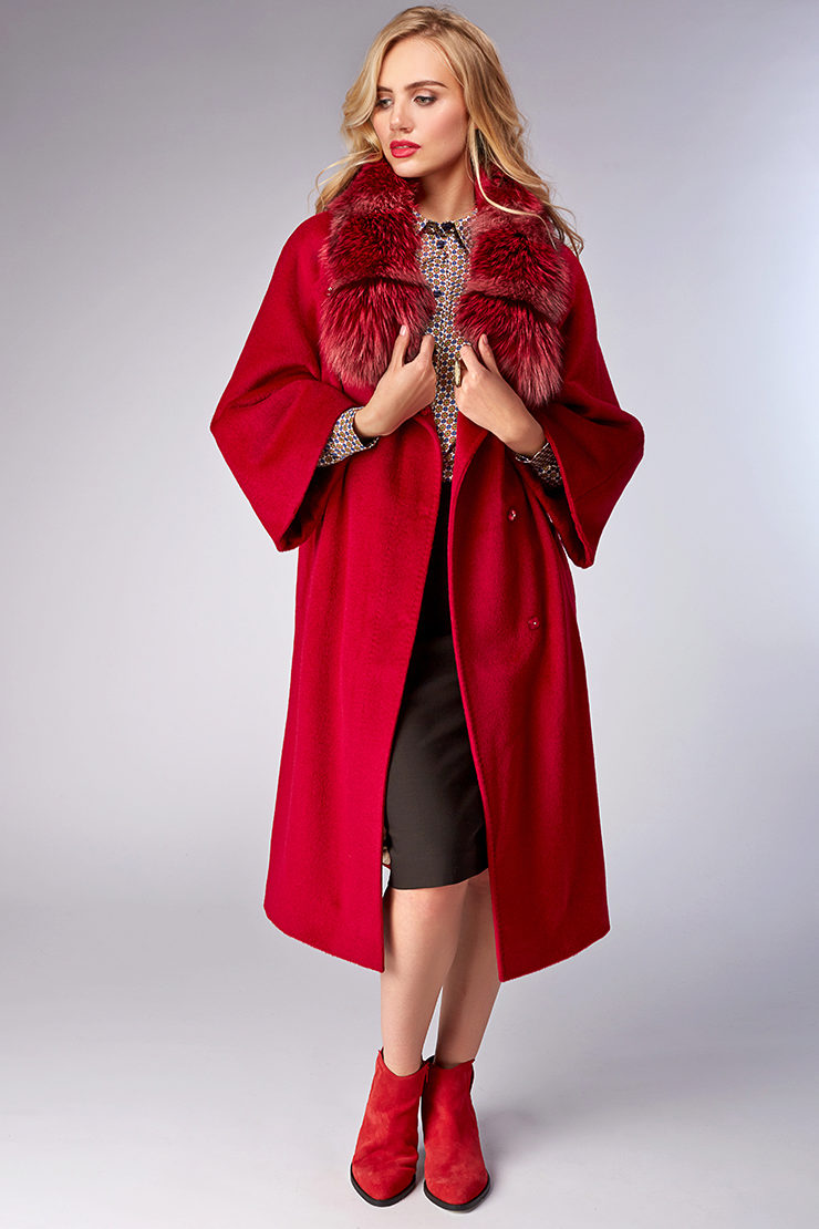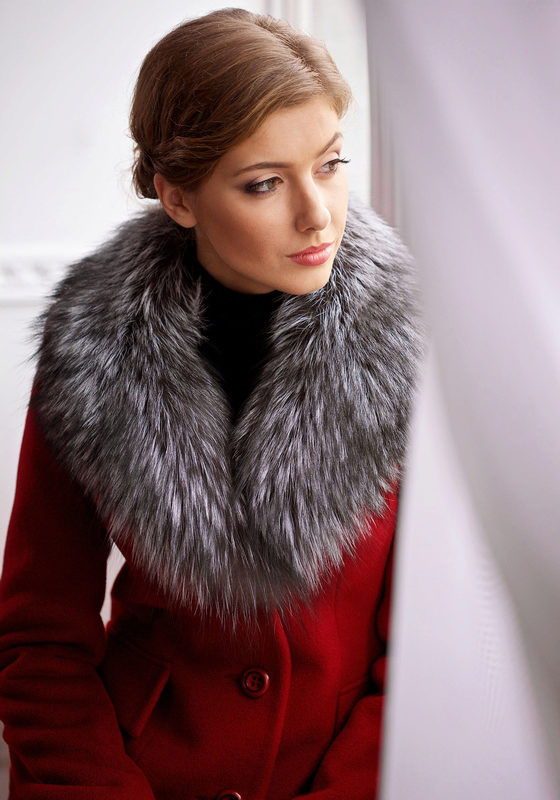 - Outrageous red color of the coat will attract even more attention to your person if it is trimmed with a large collar of white fox or sable.