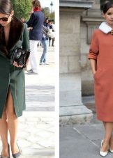 - The figure is “pear” or “apple” (wide hips in the first case and tummy in the second) - choose an A-shaped silhouette coat (extension from the chest without patch pockets at the hips in the first case and from the waist in the second), balanced by a large collar.