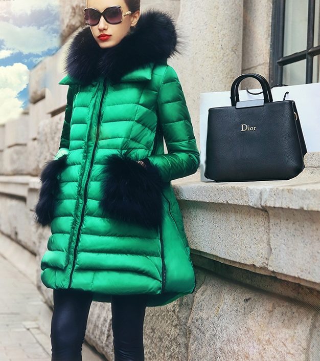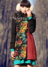 - Downy. Relatively democratic option, not wanting to yield to other materials. Down jackets of saturated beautiful flowers with a fur collar of silver fox or blufrost, which pass into the fringes of the shelves to the very bottom are of unchanged success with young women.