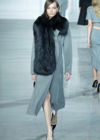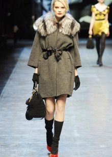 - Drapovoe. A classic of the genre, allowing to experiment with the length and style of a warm coat, as well as fur collars of absolutely any shape (turn-down, apache, shalev, racks, scarf collars), sizes (from small to bulky) and species (from rabbit to sable).