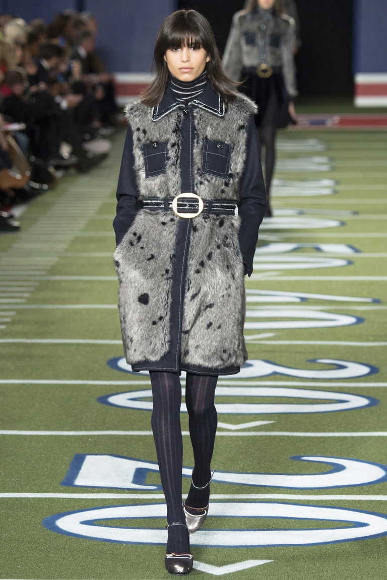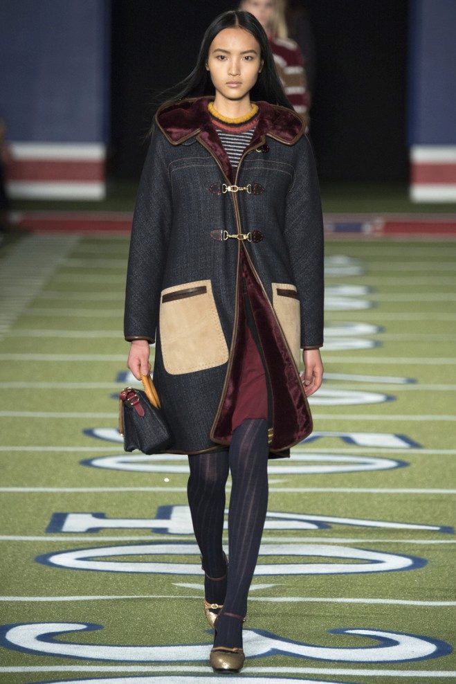 - Tommy Hilfiger introduces a denim coat from denim with a fur hood.