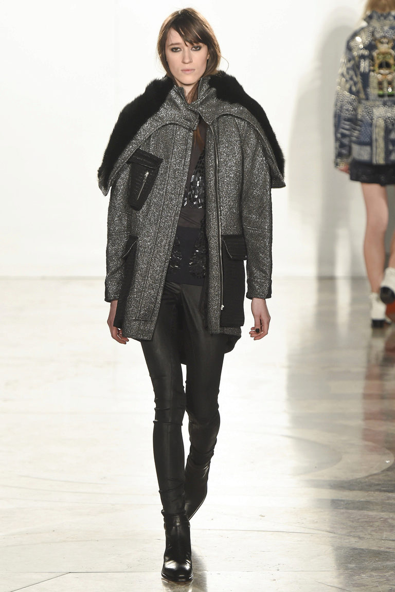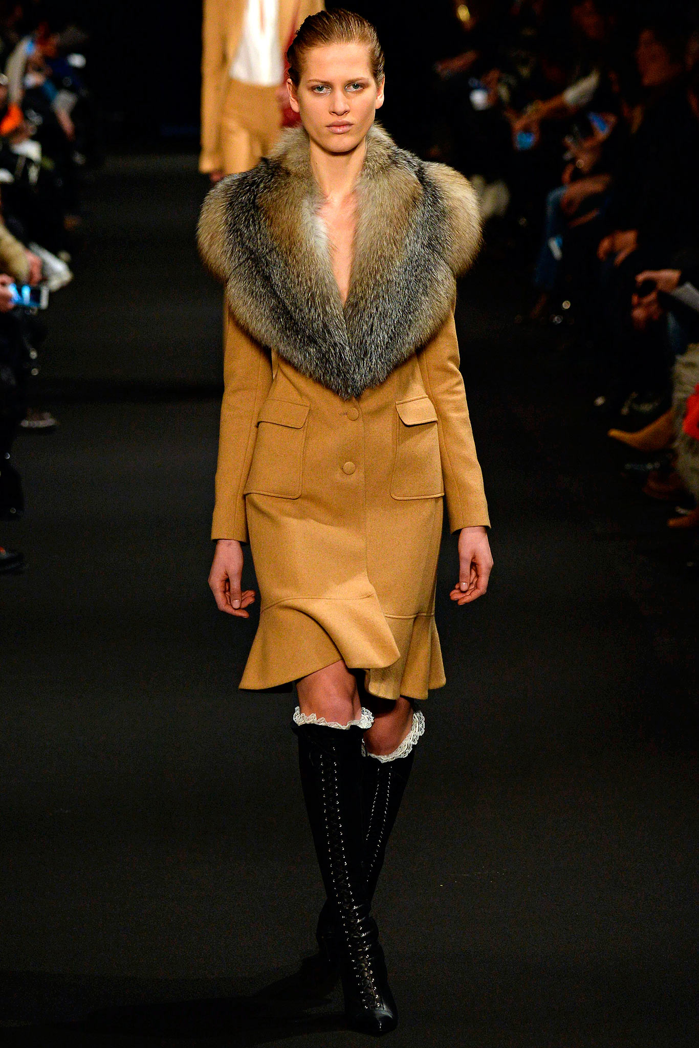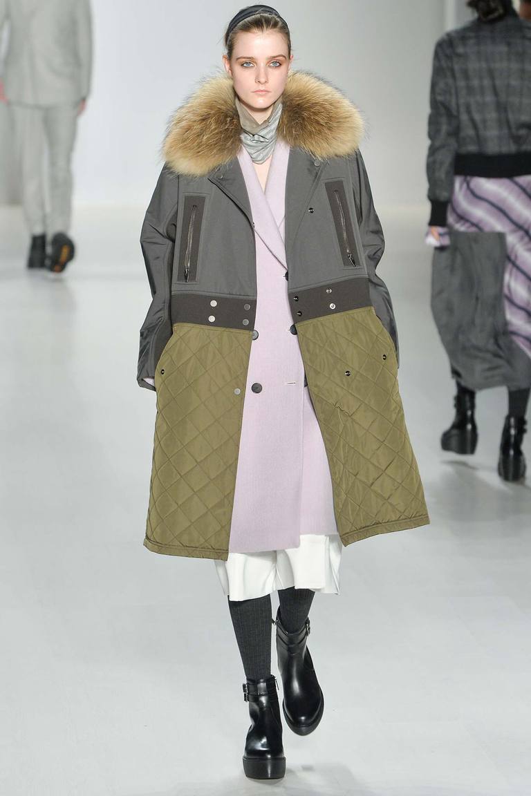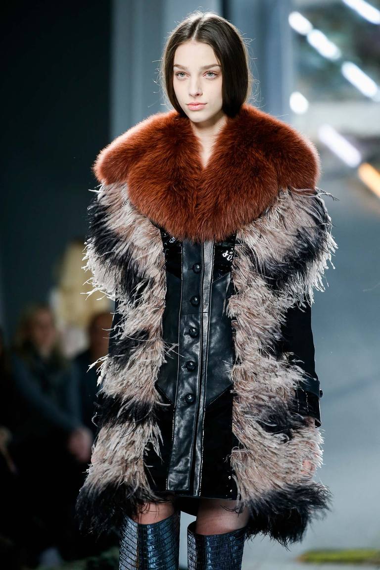 - Alexander McQueen - a laconic combo coat with a fur hood.