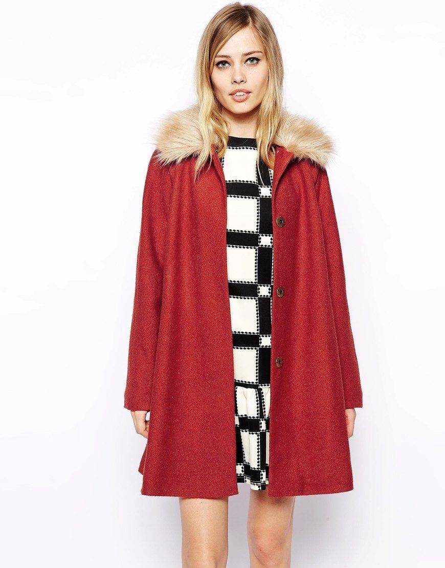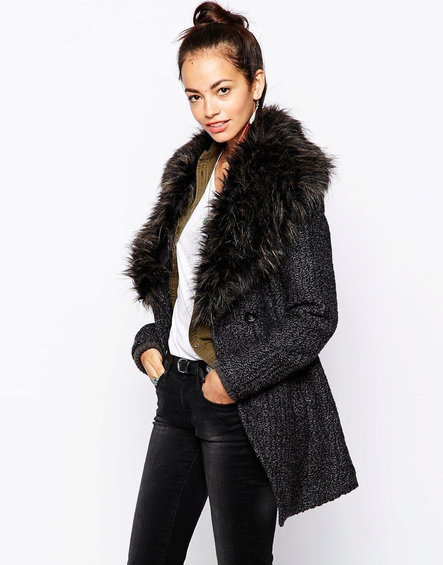 - In a short coat with a fur collar you will look great if you wear narrow dark trousers and ankle boots or boots with high or medium heels. Pencil skirt looks impressive with such a coat, especially with high-heel boots. You can add a hat with or without brim.