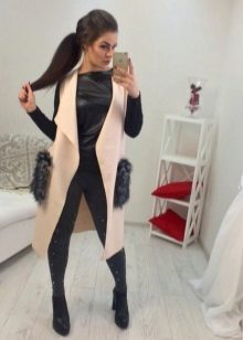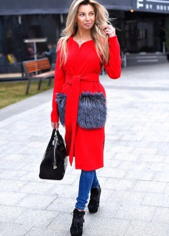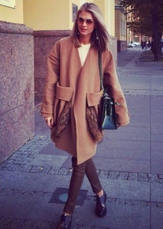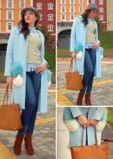 These coats are very stylishly combined with elements of casual-style clothing, such as jeans - boyfriends, stylish slip-ons or high-top sneakers, wide boots, 7/8 pants, as well as any shoes with heels may be appropriate, combined with slightly ragged jeans.