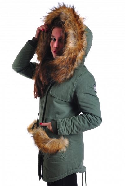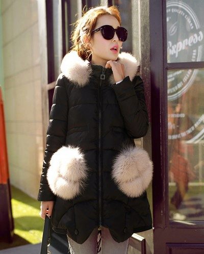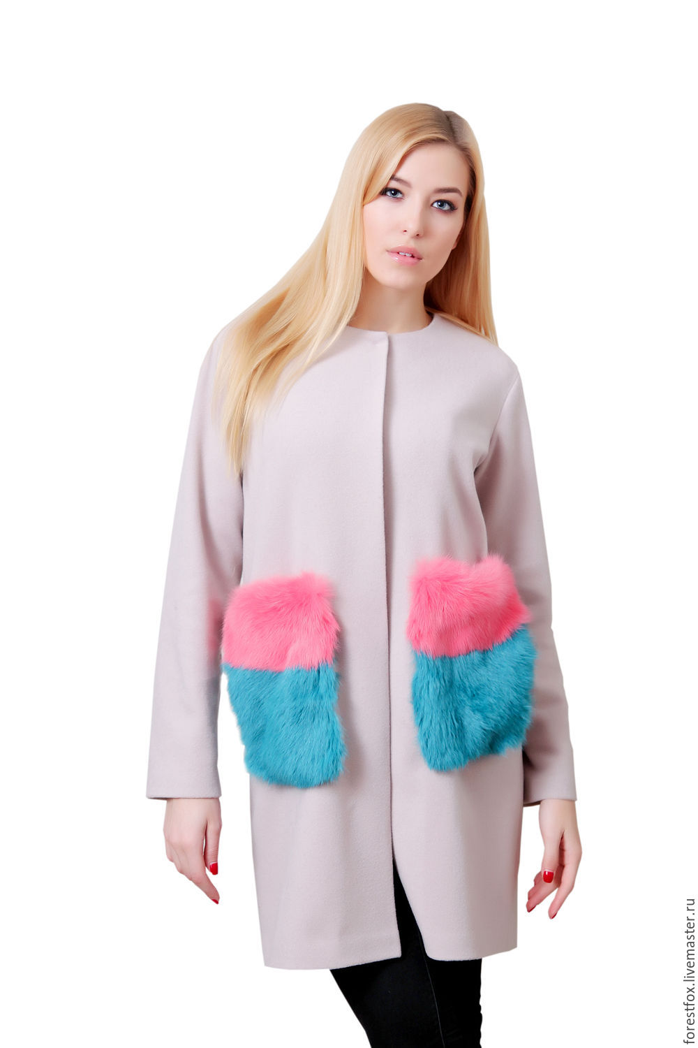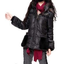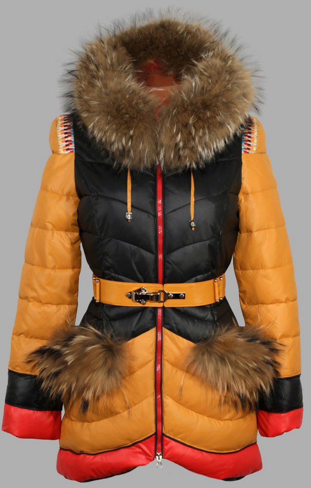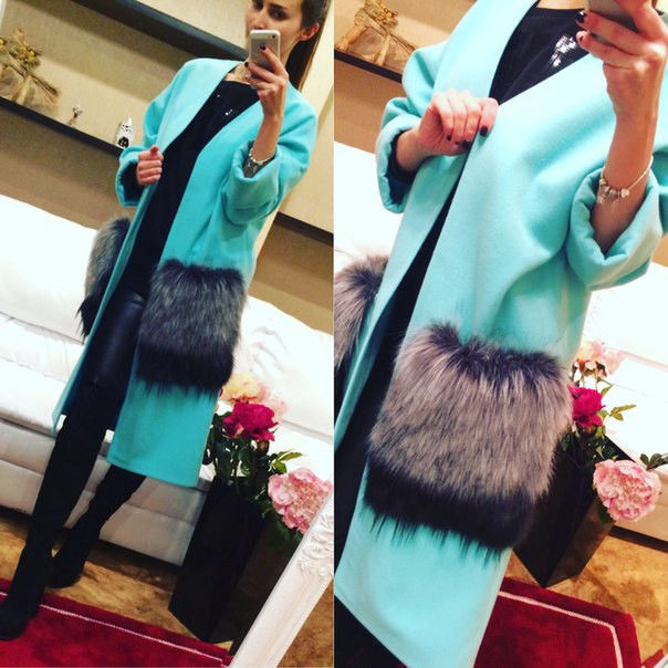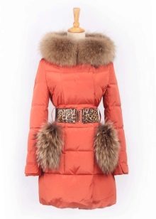 One of these decorative parts is the decorative finishing of pockets with various fur patches, which looks quite interesting and unusual.