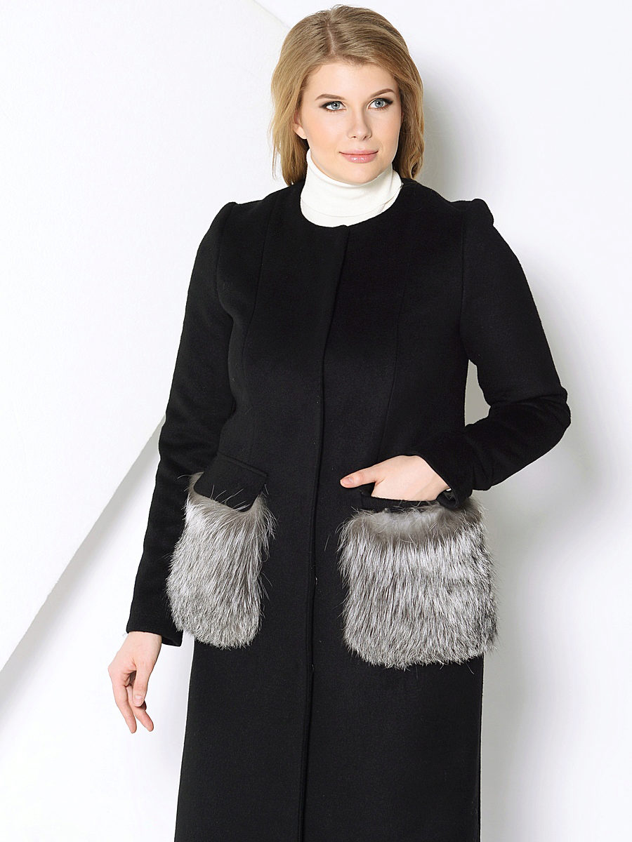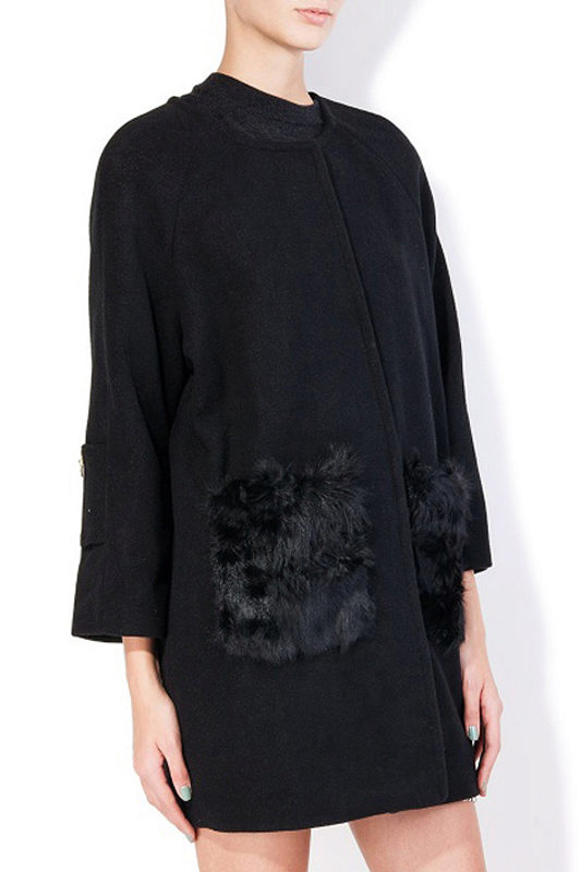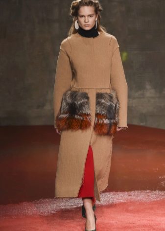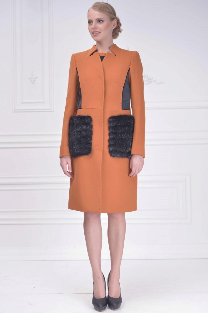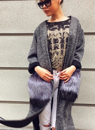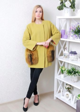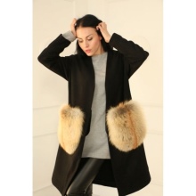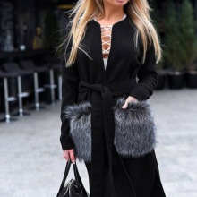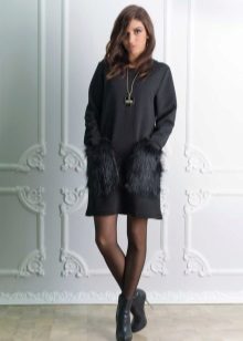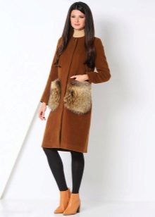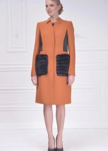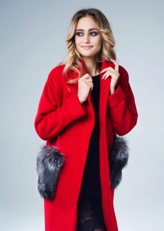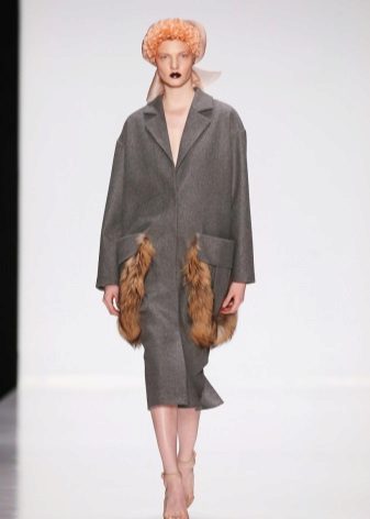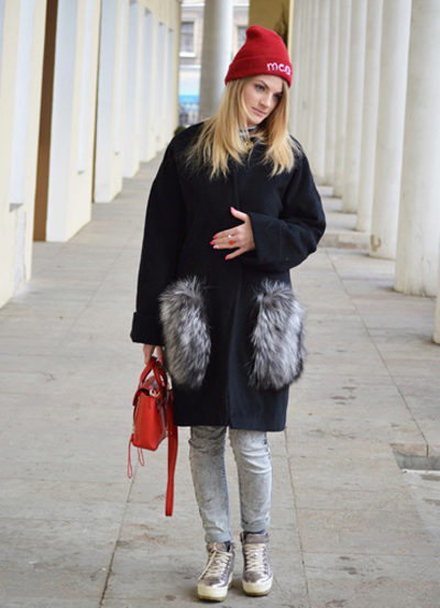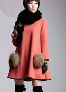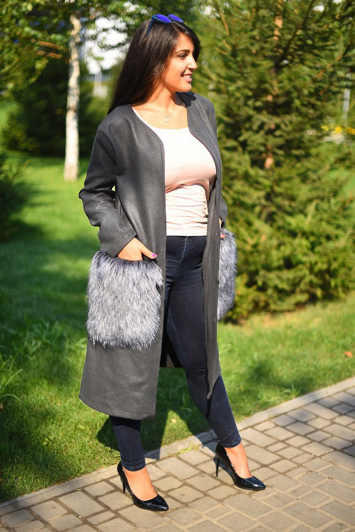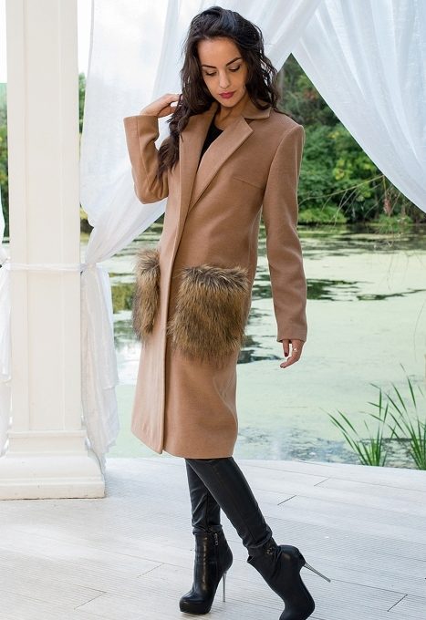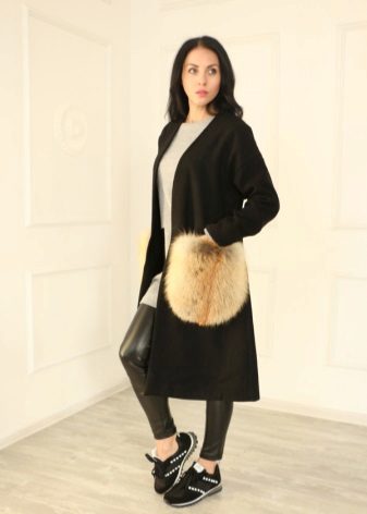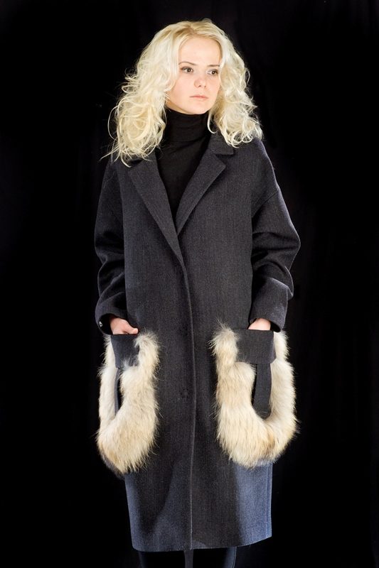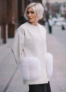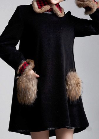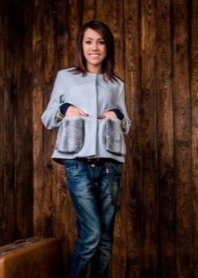 Patch pockets are the most common form that can be decorated with fur. The product is made with such pockets is quite simple, but it looks stylish and rich.