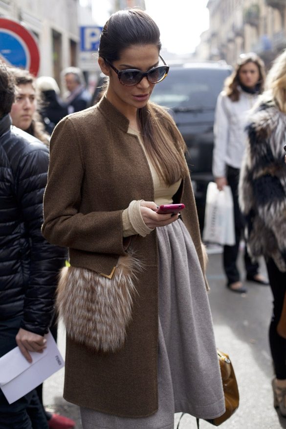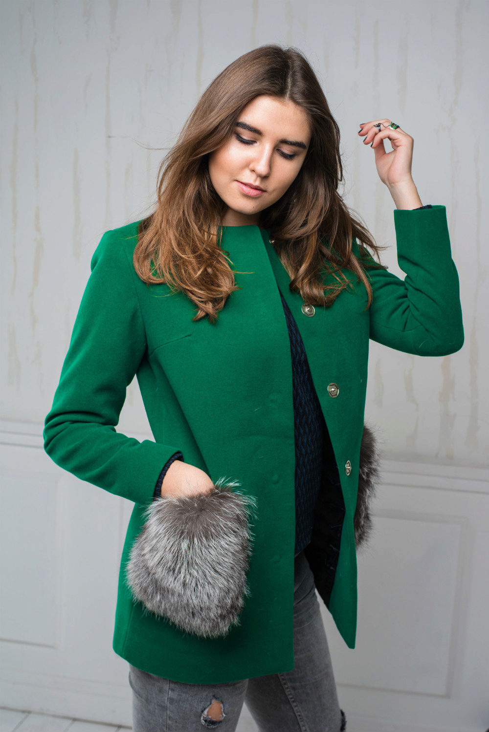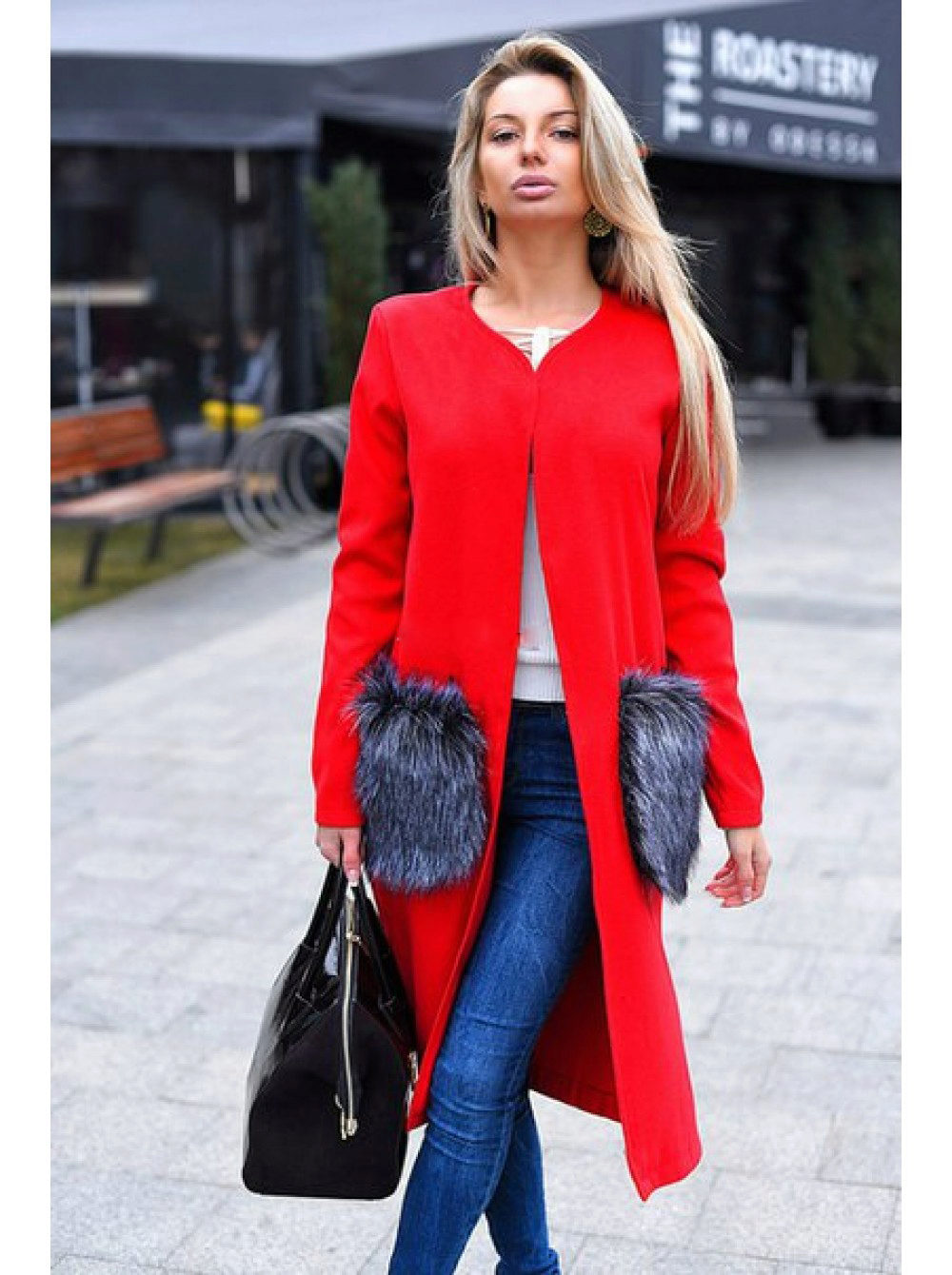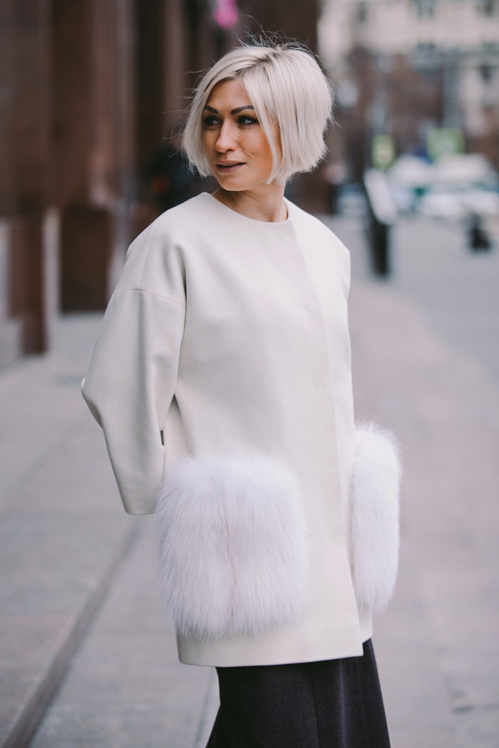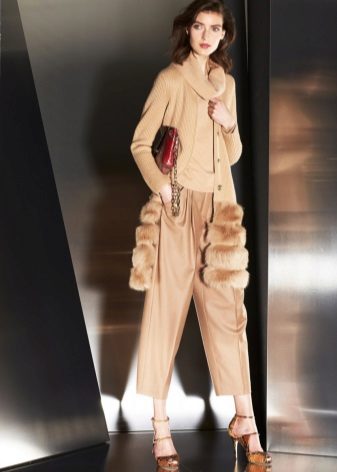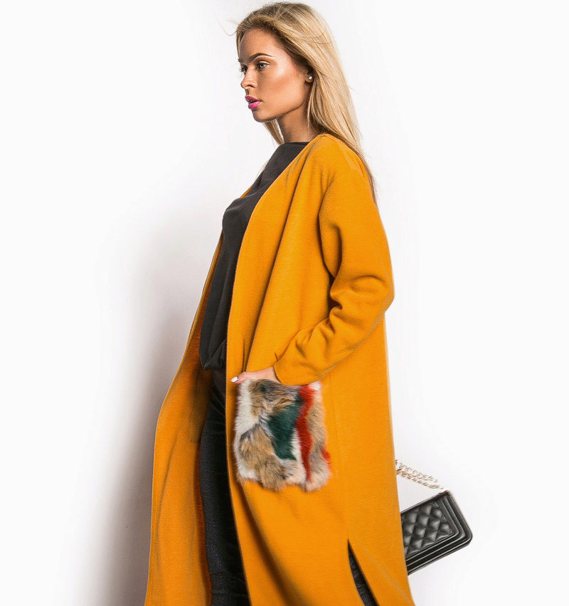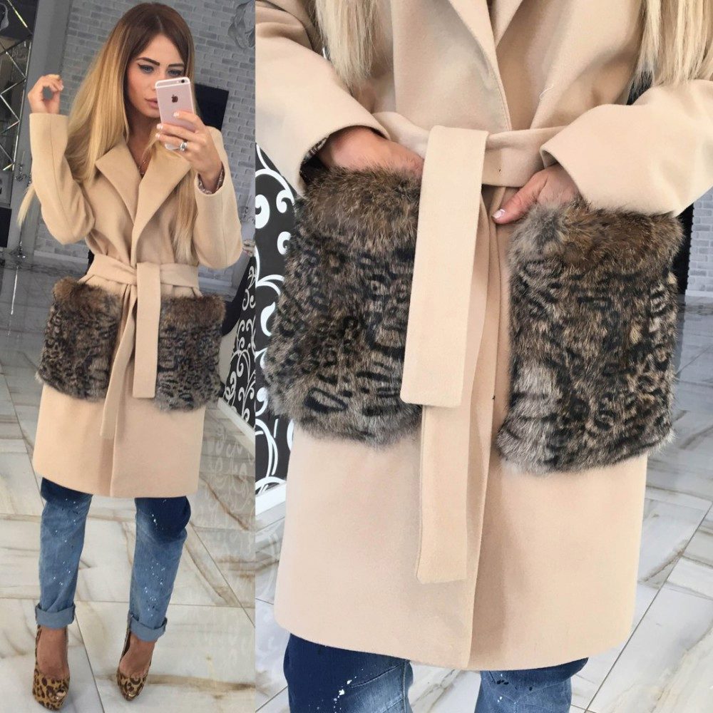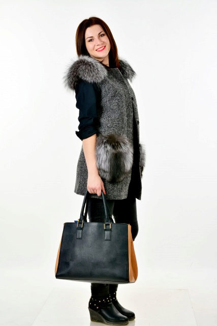 Patch pockets are the most common form that can be decorated with fur. The product is made with such pockets is quite simple, but it looks stylish and rich.