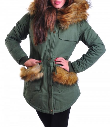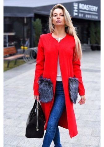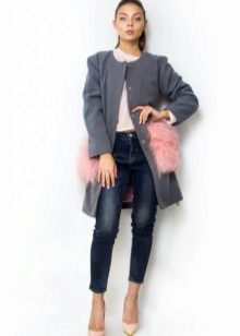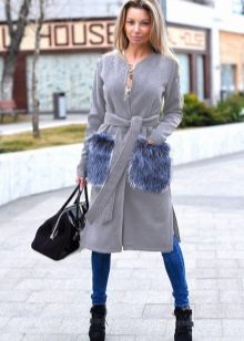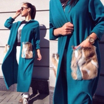 Such models can be decorated with fur not only in the pocket area, but also on the collar and along the bottom edge of the product.