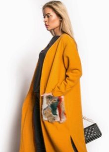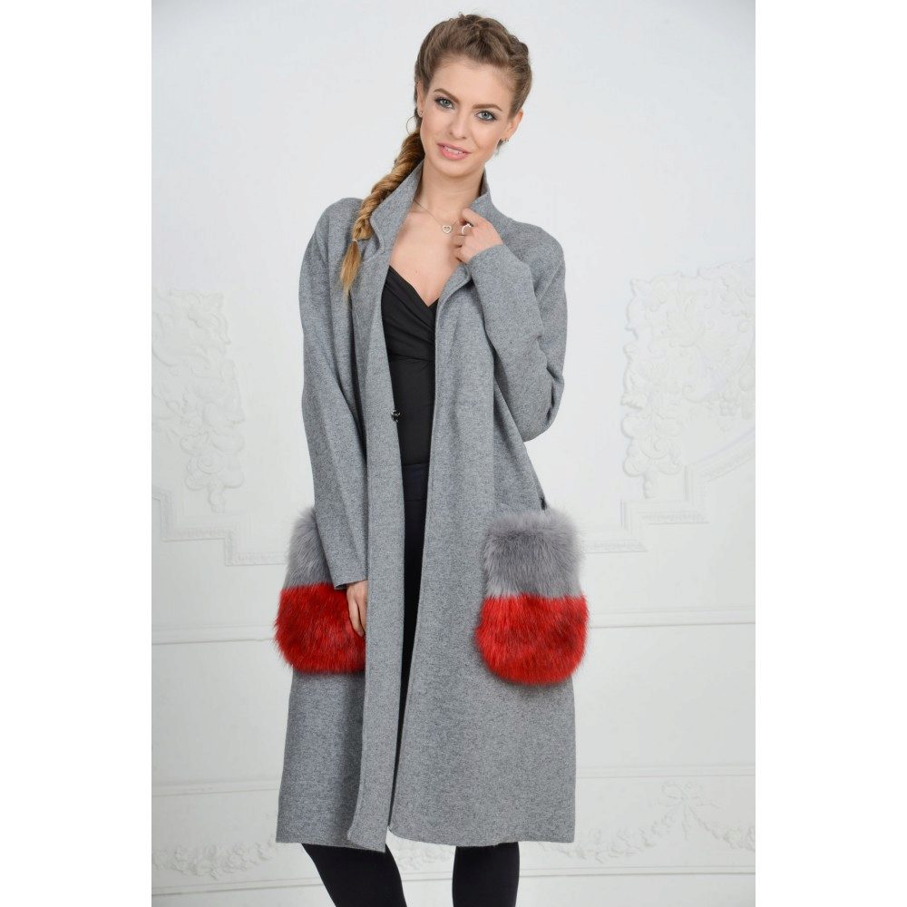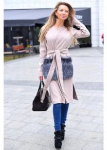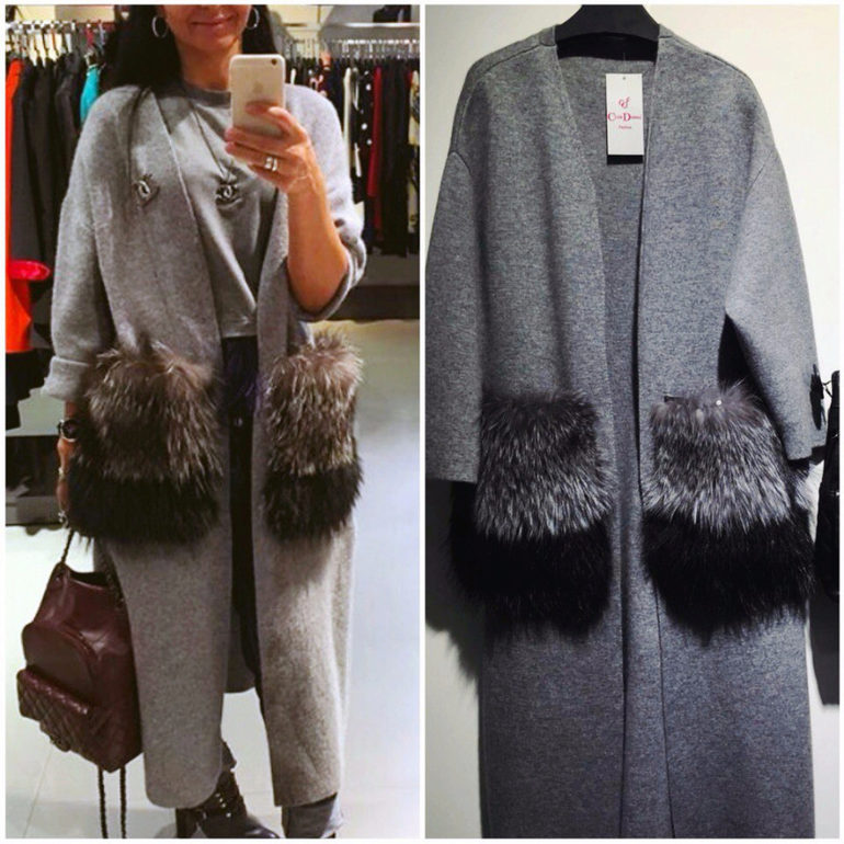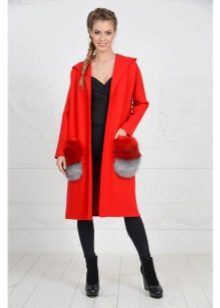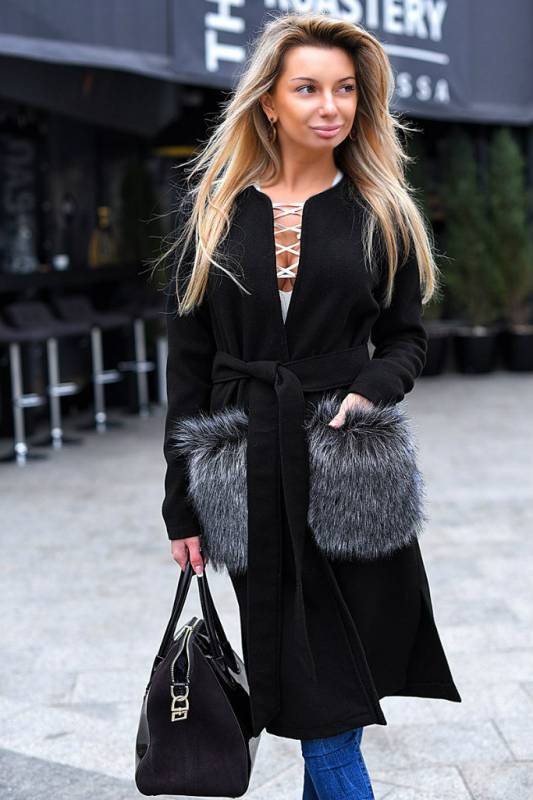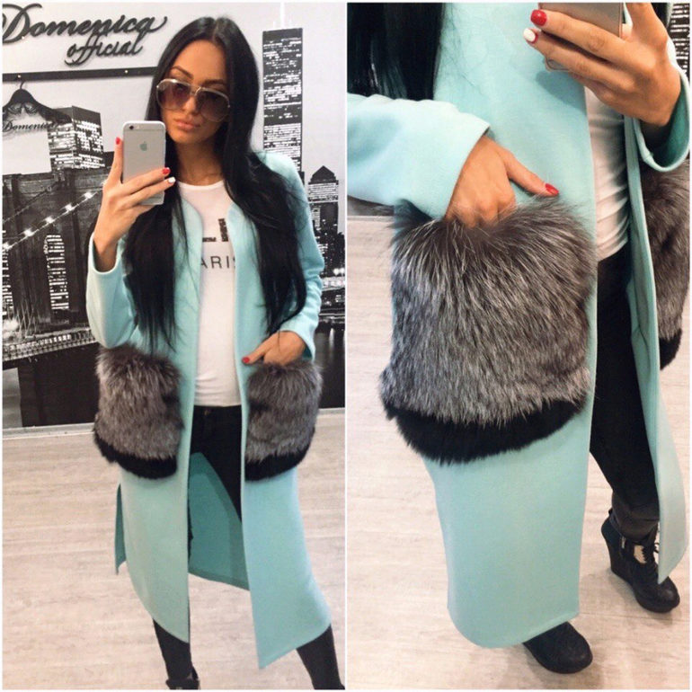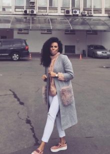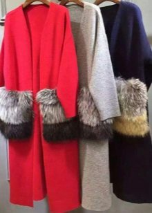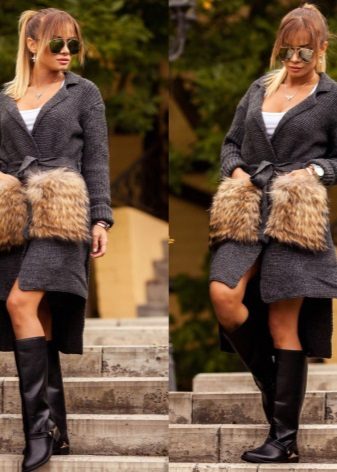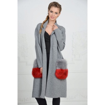 This season knitted coats with fur trim in the collar and pockets are very popular. Such models are a kind of game in contrasts, combining light knitted fabric and warm fur.