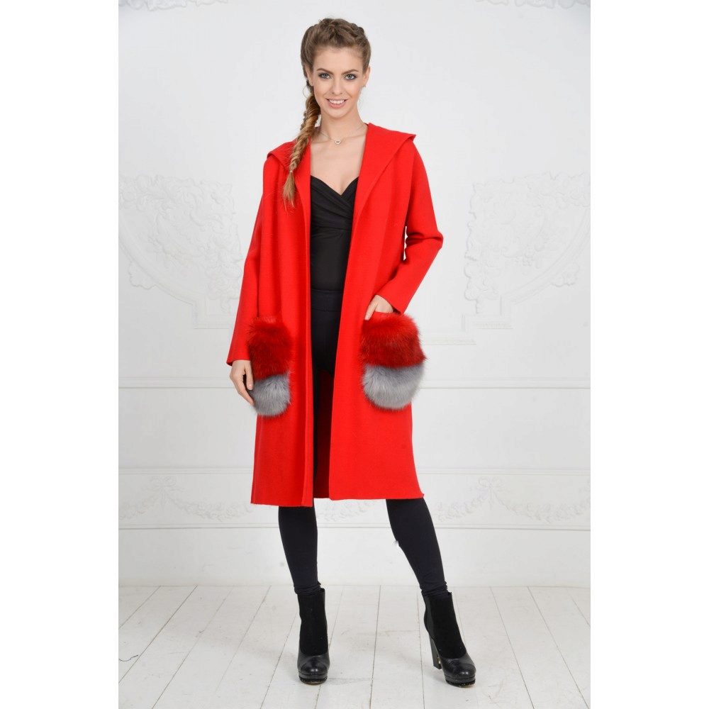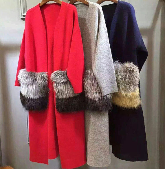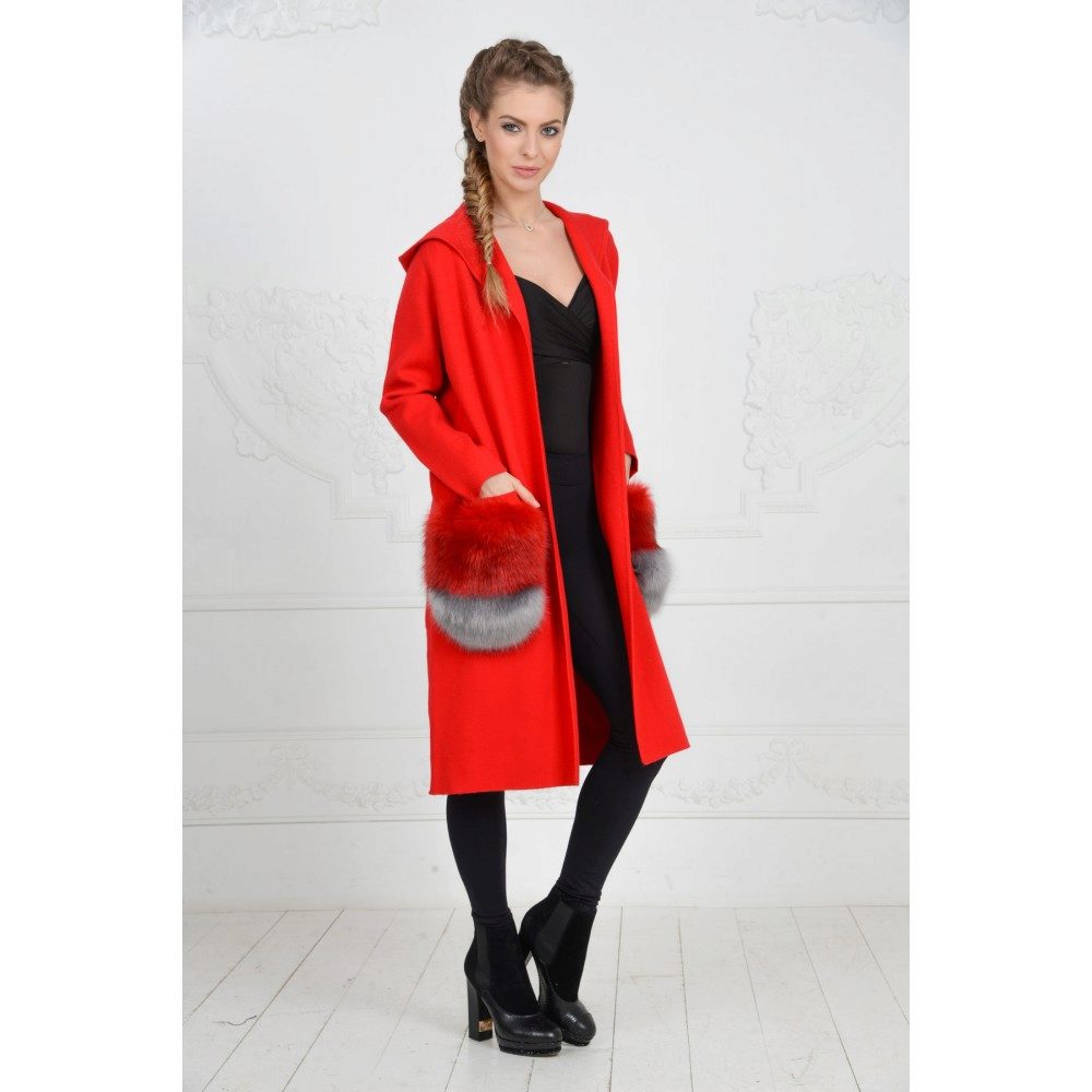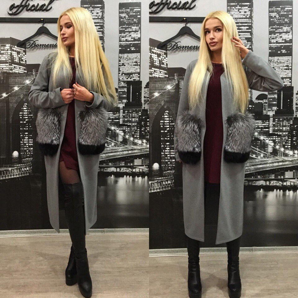 This season knitted coats with fur trim in the collar and pockets are very popular. Such models are a kind of game in contrasts, combining light knitted fabric and warm fur.