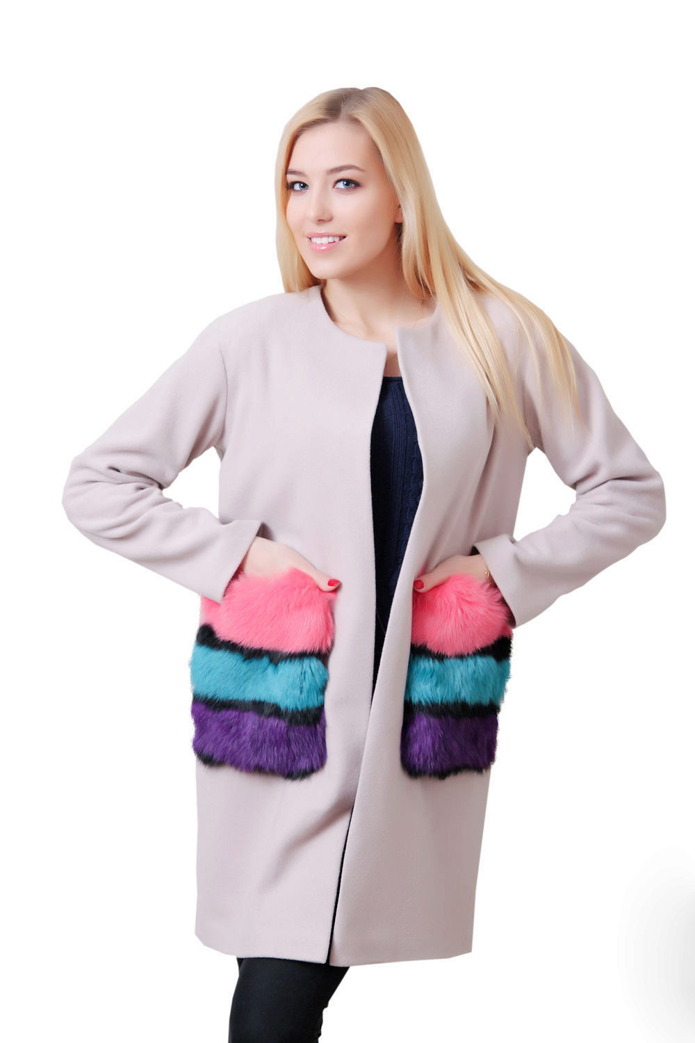 If the pockets are inside, they can also be decorated with fur, but in this case the fur strip will be made as a border, such a peculiar edging of the edge of the pocket.