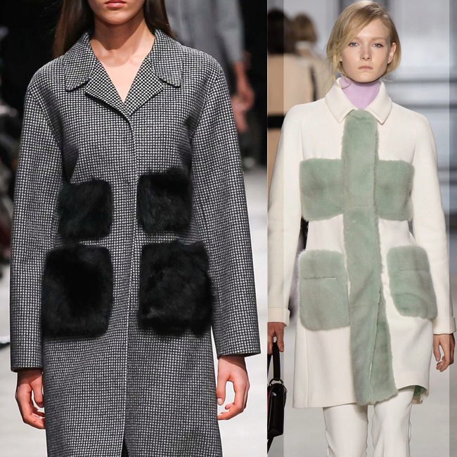 Let's return to patch pockets. They can be decorated not only with a single piece of fur, but also with thin stripes. The fur can be used even in small pieces, folding into some interesting ornament.