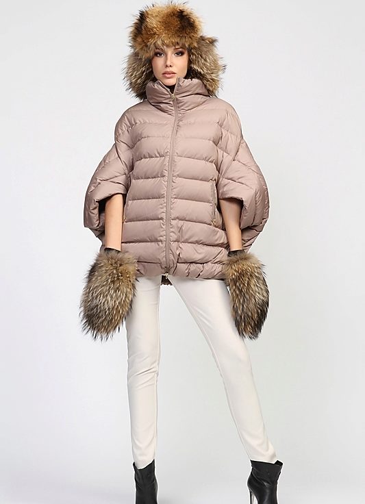 The coat-down jacket is made of bolnogue material with special impregnation, which does not allow moisture to penetrate inside the product. The filler of swan's down makes the product incredibly warm, and also has the function of protection against strong wind.