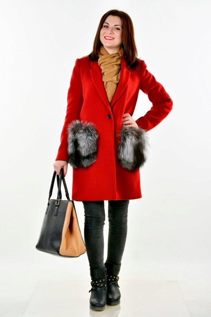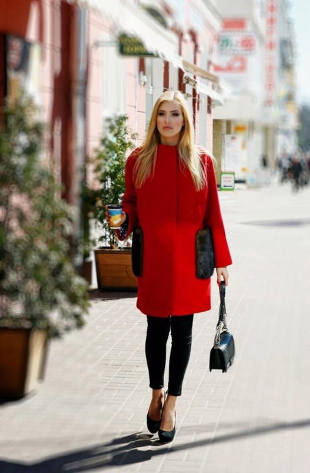 The red coat has recently lost its former popularity, since the natural shade of this color looks somewhat aggressive. But in-depth shades of red, such as burgundy, wine, marsala color are unprecedentedly popular and are perfect for dark-haired girls.