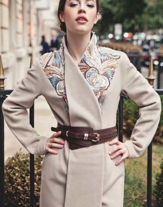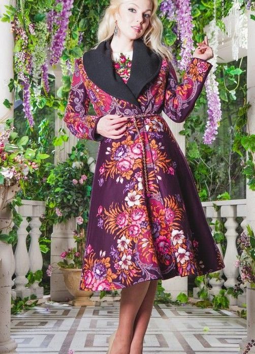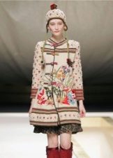One of the most stylish and original embroidered models is a coat decorated in Russian style. Rich embroidery, bright colors, spectacular design are very characteristic for this subject. The prototype of such a coat is an old Russian caftan of wealthy merchants, nobles and even a king.