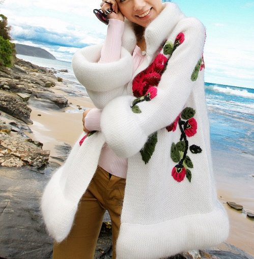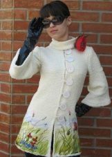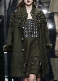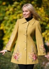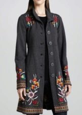 Knitted and wool Coats are highly popular this season. Such models look great with embroidered decor. Especially if the coat itself is made in a restrained, modest color, and for embroidery bright, multi-colored threads are used.