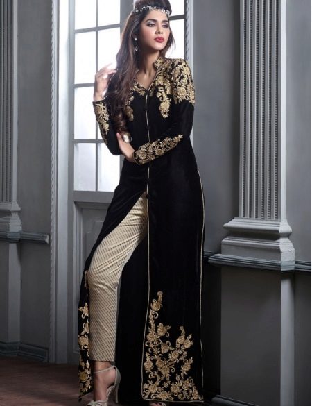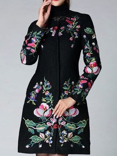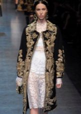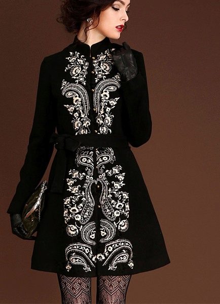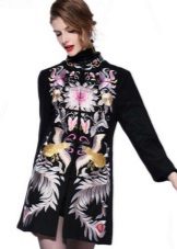 Black coat is ideal for various embroidery. Especially stylish and expensive looks beautiful embroidery with gold or silver thread. The pattern can be thin, openwork, for example, embroidery of flowers or other vegetation.