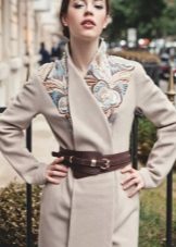 Most often, these coats are made in monochromatic colors - black, gray, beige. Embroidered pattern looks brighter and more effective on monophonic materials.
