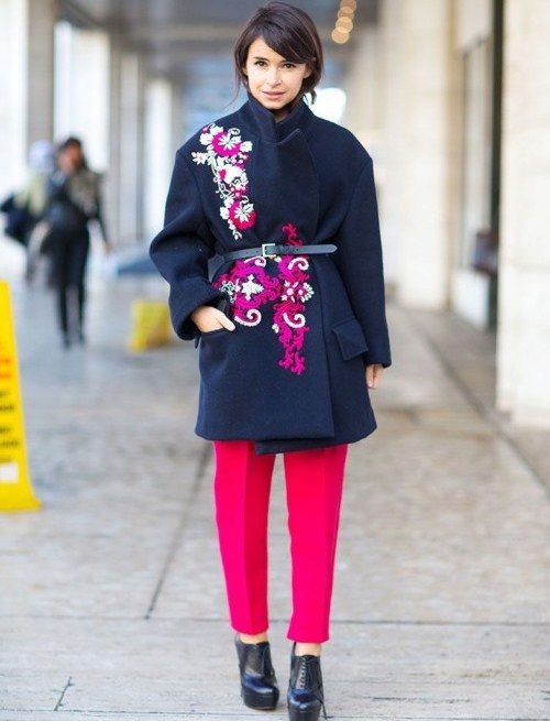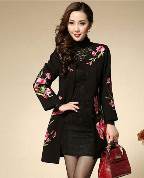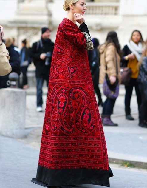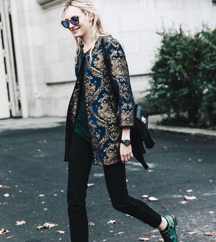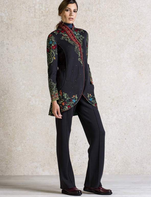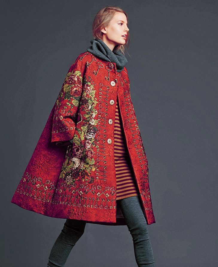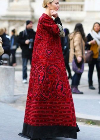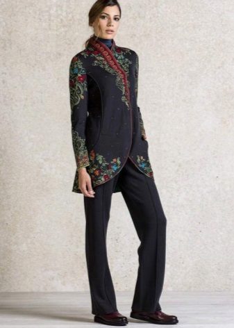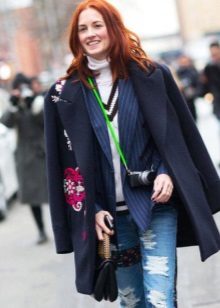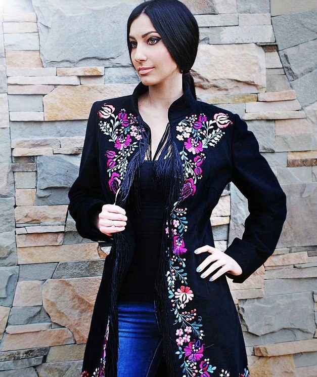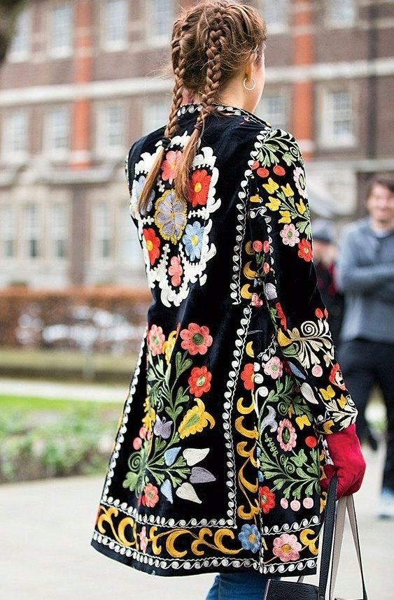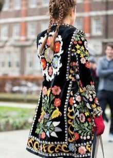 The embroidered coat, depending on its style, can be worn with different wardrobe items.