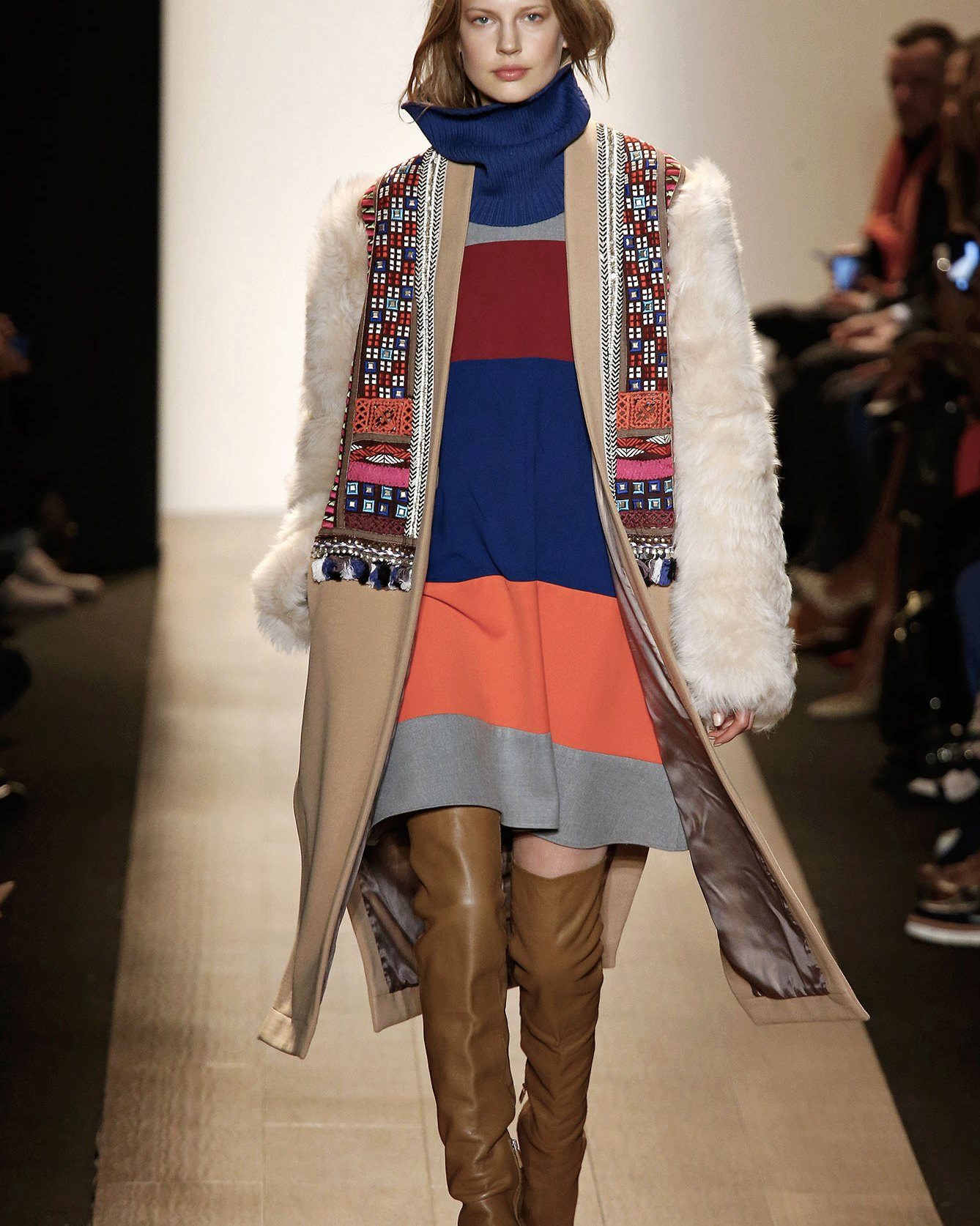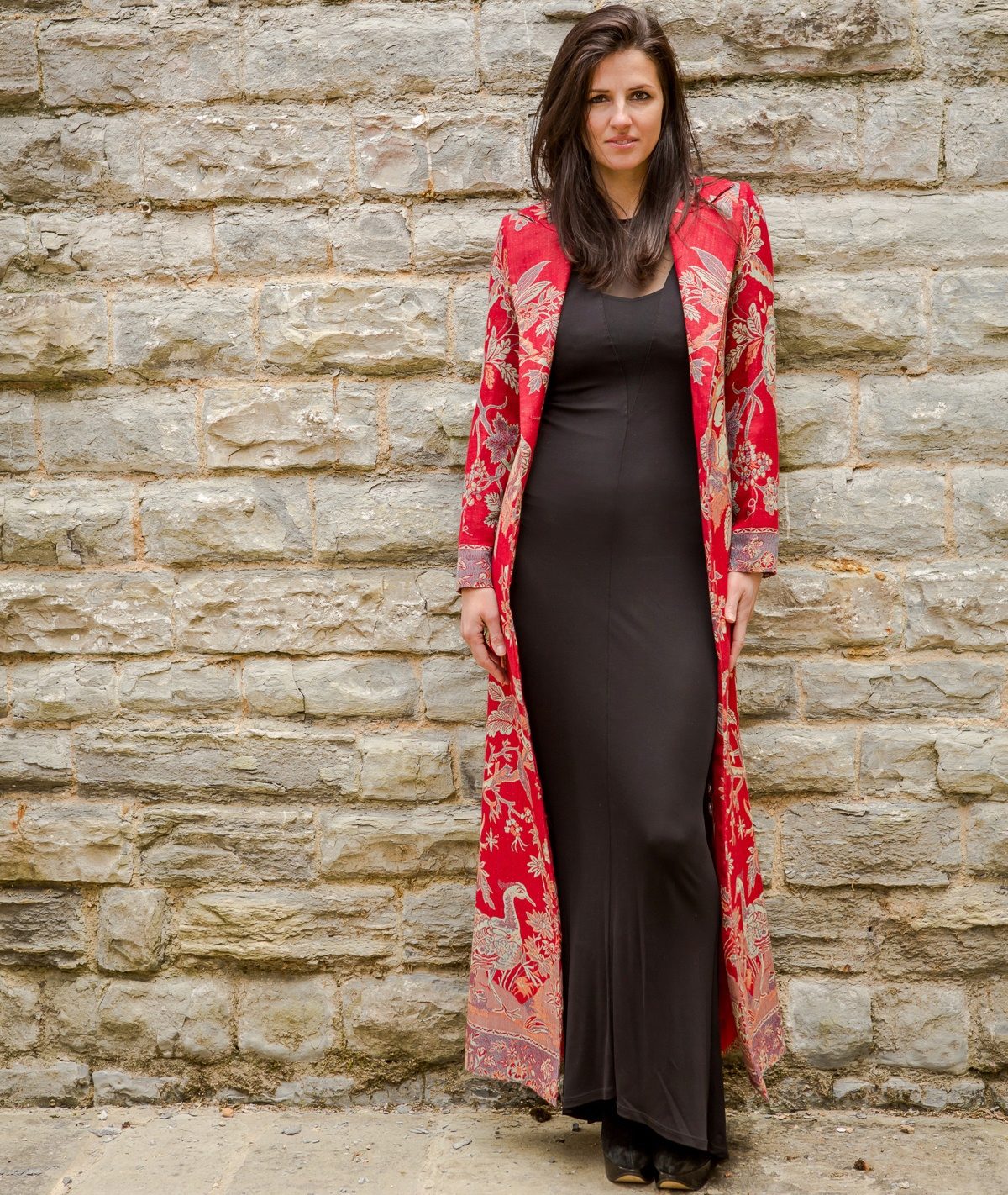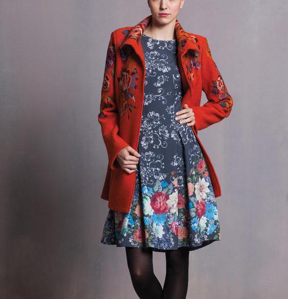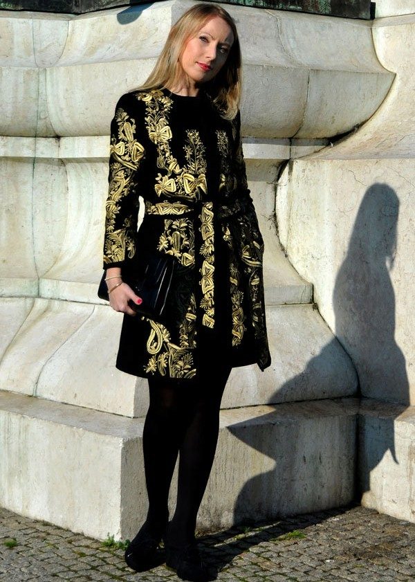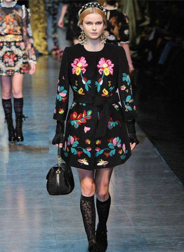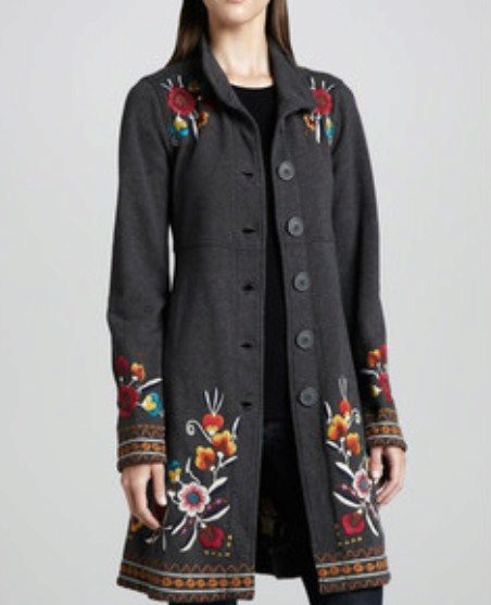 The embroidered coat, depending on its style, can be worn with different wardrobe items.